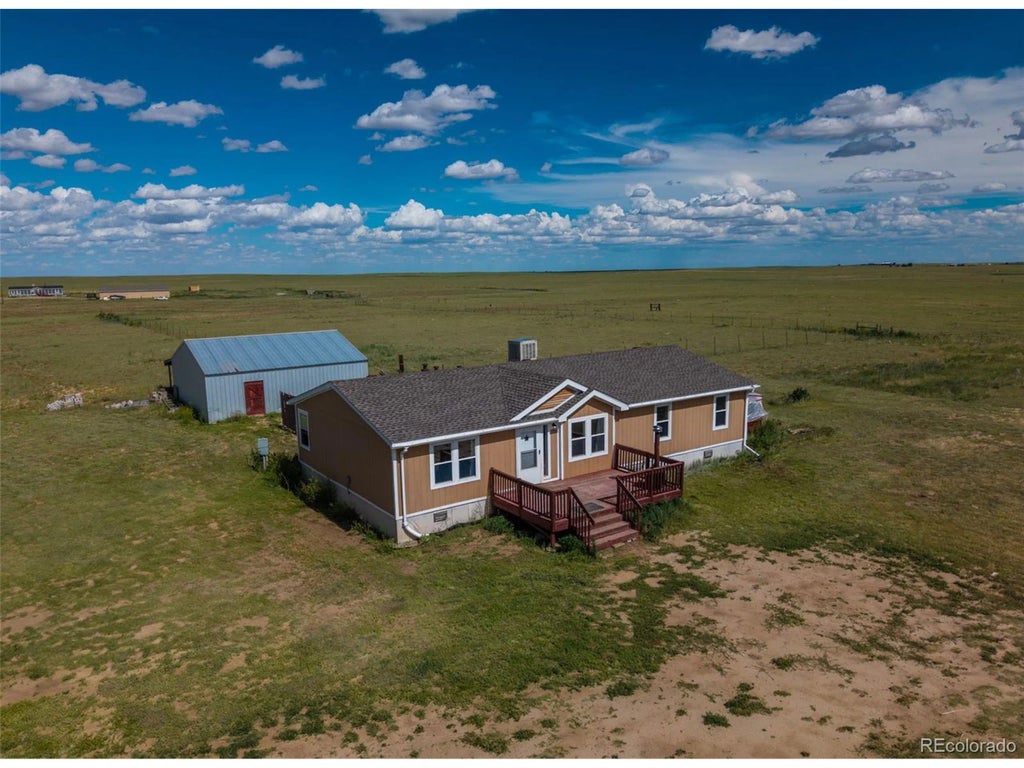 ***See the Amazing Video at the Virtual Tour Link on the listing*** This property is a peaceful 40-acre retreat in Yoder, Colorado, offering sweeping 360-degree views-including vistas of Pikes Peak. This well-appointed ranch-style home combines the serenity of rural living with thoughtful updates and equestrian-friendly amenities. Step inside to vaulted ceilings and abundant natural light. The kitchen is equipped with stainless steel appliances including a gas stove, a breakfast bar, pull-out pantry shelves, a pot rack, and plenty of counter space. The front-load washer and dryer are conveniently located in the laundry room, which also offers direct access to the back deck. A wood deck on both the front and back of the home creates the perfect space to enjoy peaceful mornings or watch the sun set across the plains. Equestrians and hobby farmers will appreciate the well-equipped barn featuring three horse stalls, a tack room with separate outside access, and a covered lean-to ideal for additional storage or vehicle parking. The barn provides direct access to a 2-acre fenced area for livestock or horses, and an extra refrigerator/freezer in the tack room is included. On the south side of the home, the property is framed and ready for a greenhouse-perfect for those interested in self-sufficiency or gardening. A large moveable metal storage unit offers additional farm or property storage near the home. Additional recent updates include a new roof, gutters, and exterior paint in 2023, ensuring peace of mind and curb appeal. Whether you're looking for a turn-key horse property, a quiet country homestead, or simply a space to spread out and enjoy the Colorado landscape, this property has it all. Have the freedom and beauty of rural life without sacrificing access to modern conveniences.