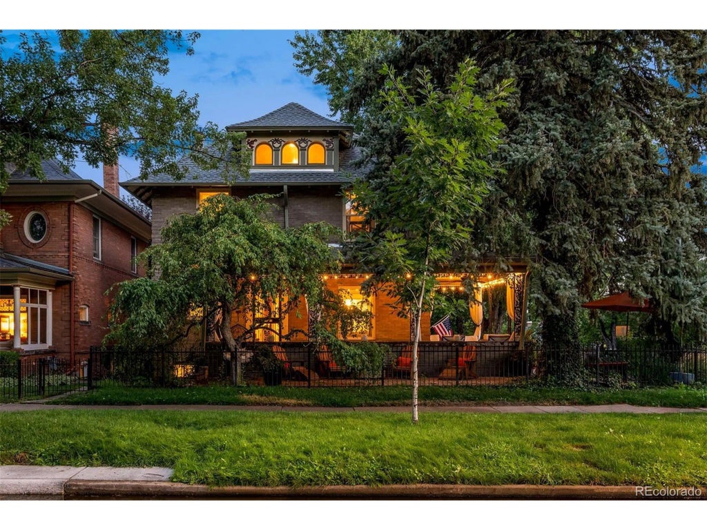 Anchoring a prominent corner along historic 7th Avenue, this distinguished Denver Square reflects the architectural character of a bygone era while offering thoughtful modern updates for today's lifestyle. A wide wraparound porch graces the facade, extending a gracious welcome and enhancing outdoor livability. Inside, preserved details celebrate the home's original craftsmanship - a striking staircase banister, elegant pocket doors, and a richly detailed fireplace surround speak to its heritage. These period elements blend seamlessly with recent enhancements, including a modernized kitchen and a meticulously finished basement with unusually high ceilings, creating an uncommon sense of space and versatility. The floorplan offers five bedrooms and three bathrooms, with a third-floor bonus room that provides flexible options for an office, studio, or retreat. Large windows fill the interiors with natural light, while high ceilings throughout enhance the home's stately presence. Perfectly situated on the tree-lined 7th Avenue, the residence places you in one of Denver's most treasured neighborhoods. Here, historic character and modern comfort converge, creating a rare opportunity to own a home that is both timeless and livable.