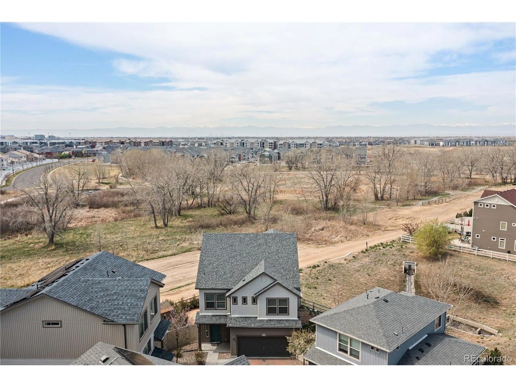 This is a rare opportunity. Home perfectly positioned on a premium lot with just two neighboring properties and quiet surroundings far from noisy, and air-polluted roads. Enjoy peaceful living with scenic greenbelt views and southern exposure that fills the home with natural light year-round-perfect for gardening or simply bright, cheerful interiors. There are no HOA fees for this area. Unlike new construction in the area, this property already offers a fully landscaped, low-maintenance, fully fenced backyard, saving you thousands in time, cost, and effort. The spacious patio is ideal for entertaining, while mature evergreens provide year-round greenery. An 80 sq. ft. storage shed adds convenience, and you'll never need to worry about front yard upkeep or snow removal-it's all handled for you. Inside, the open floor plan flows from a modern kitchen with a large island into a welcoming living area. The unique third-floor bonus level-rather than a basement-offers flexible space for a home office, gym, or recreation room. The primary suite features a dual-sink vanity, oversized shower, and large walk-in closet, while two additional bedrooms each have walk-in closets. Other features include carpeted bedrooms, central air, and a 2-car attached garage. Built in 2018, this energy-efficient home includes modern windows, HVAC, and insulation. Its location offers quick access to the recreation center, First Creek Park, golf course, shopping, dining, and the 61st & Pena Light Rail Station, making travel to Downtown Denver or DIA simple. The nearby bike path enhances your connection to the outdoors, and the area's excellent water quality is free from the unhealthy chemicals found in some of the Denver Metro areas. More info available at request. This is a rare opportunity to own a move-in-ready, energy-efficient home on a premium lot with greenbelt views, no HOA, and low-maintenance outdoor living.