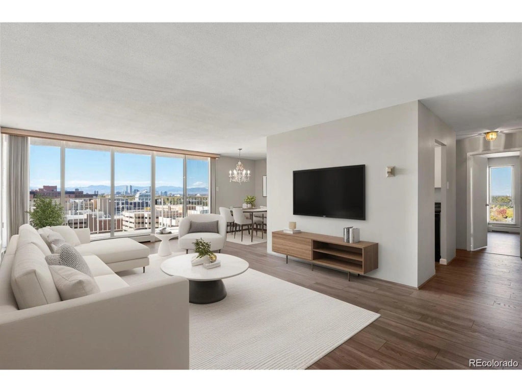 Welcome to this light filled 2 bedroom, 2 bathroom condo offering 1,140 sq ft of open living space in the heart of East Denver. Located on a high floor in the well maintained Park Mayfair building in the sought after Hale neighborhood, this residence blends comfort and convenience. Enjoy beautiful city and mountain views from your private balcony. The spacious layout separates the bedrooms for added privacy and includes generous living and dining areas. The Park Mayfair community offers outstanding amenities including both an indoor and outdoor pool, a fully equipped fitness center, a relaxing sauna, and well maintained common areas. Prime location near shops, restaurants, and public transit, with easy access to downtown Denver and nearby parks. Whether you're seeking a move in ready home or a strong investment opportunity, this condo delivers exceptional value and lifestyle.