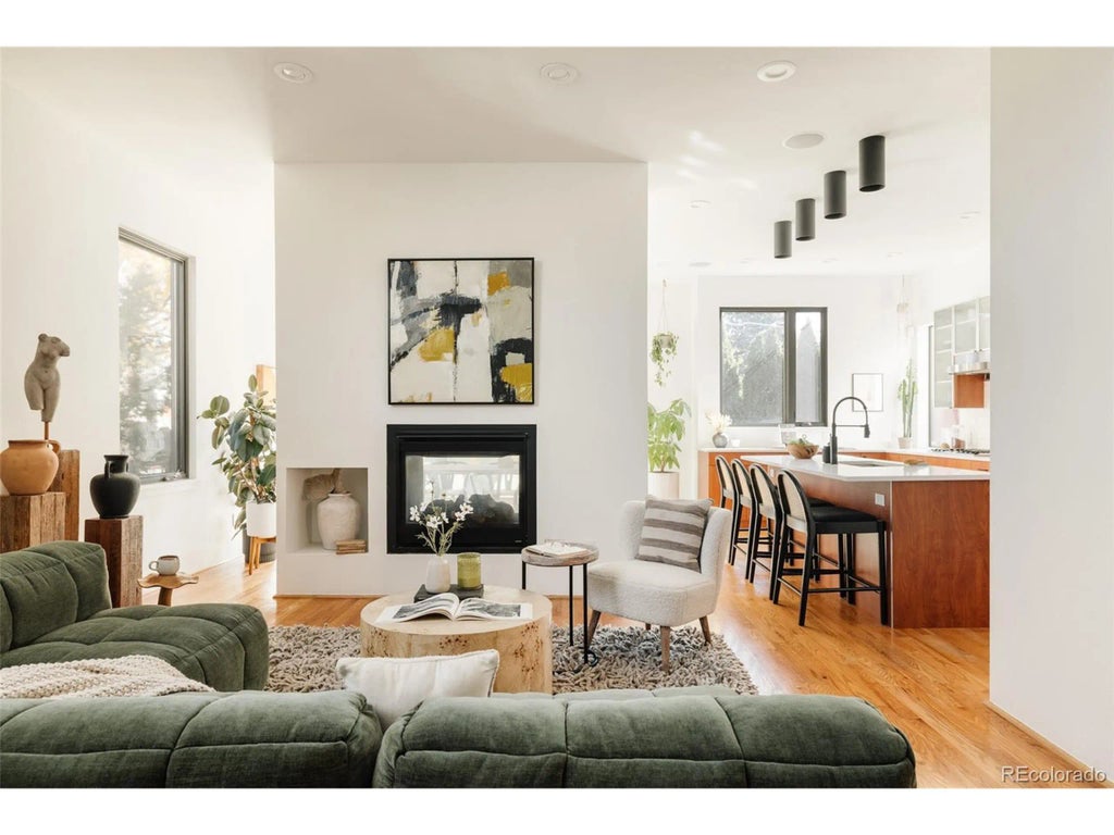 Remarkable custom home in the heart of Highlands. This exceptional custom residence sits perfectly between Highlands Square and Sloan's Lake. From the moment you enter through the private front courtyard, it's clear this is a home unlike any other. Soaring 20-foot ceilings create a dramatic sense of space in the living room, centered around a striking double-sided fireplace that flows seamlessly into the dining area-perfect for entertaining. The updated chef's kitchen is a showpiece, featuring new quartz countertops, a full-height custom tile backsplash, and a premium Bosch appliance suite. Whether hosting dinner parties or casual gatherings, this space was designed to impress. A large main-level office offers an ideal work-from-home environment with French doors opening to a peaceful private courtyard. Upstairs, discover three generous bedrooms and two beautifully updated bathrooms, including a completely remodeled, spa-inspired five-piece primary bath that feels like a retreat. The private rooftop deck is ideal for morning coffee or evening relaxation under the stars. The high-ceiling basement expands your living space with a built-in bar, a temperature-controlled wine room, and a spacious family room perfect for movie nights or game days. A private guest bedroom and full bathroom make this level ideal for visitors. Outdoors, the inviting backyard is an entertainer's dream, complete with a sunken hot tub and plenty of room to relax or dine al fresco. The detached two-car garage offers ample space for vehicles and Colorado gear alike. Enjoy life close to the boutiques and dining of Highlands Square and the outdoor recreation of Sloan's Lake. With easy access to downtown Denver, I-25, I-70, and US-6, this home offers the perfect blend of luxury, comfort, and convenience. This is truly a one-of-a-kind home in one of Denver's most sought-after neighborhoods. Welcome home.