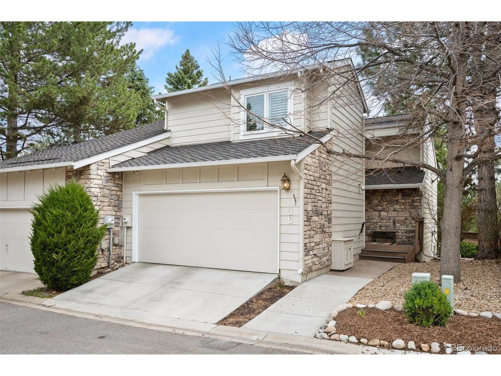 This beautifully updated and well-cared for townhome in The Terraces at Stoney Brook features vaulted ceilings, hardwoods, new carpet and a deck overlooking a pond and stream. The main floor hosts a living room with vaulted ceiling, gas fireplace, windows overlooking the pond and is adjacent to the nearby dining room with French doors to the deck. The updated eat-in kitchen is spacious with bookshelves, extensive storage, granite countertops, pantry, refrigerator, dishwasher, range/oven and garage access. Also located on the main level and convenient for guests is an updated half bath. The deck features privacy fencing, a newer awning, a gas line for a gas grill and plenty of room for entertaining. The primary suite is on the second level and is expansive and sunny with a large west-facing window, mirrored closets, vaulted ceiling and adjacent 5-piece bath. The second bedroom is also on the upper level and has its own updated ensuite full bath. A loft area perfect for a small office completes the second floor and overlooks the living room. The large finished basement space has garden level windows and could be used for entertainment, exercise, crafts, office or a combination of uses. The laundry area and utility room with mud sink and storage is nearby. The current owners have made extensive new upgrades to the home since their 2018 purchase including: furnace, AC unit, water heater, second floor carpet, entry storm door, smart thermostat, digital locks, and ceiling fan. The kitchen also hosts a newer microwave, garbage disposal and refrigerator. Even the garage has updates with a new driveway, new garage door and opener and an electric car charging station. Located in a park-like setting in DTC, Stoney Brook offers luscious landscaping, gardens, ponds and streams. Amenities include on-site management, clubhouse, pool, hot tub, tennis court, pickle ball courts and walking paths. For more details, visit https://www.4605SYosemiteStUnit36.com