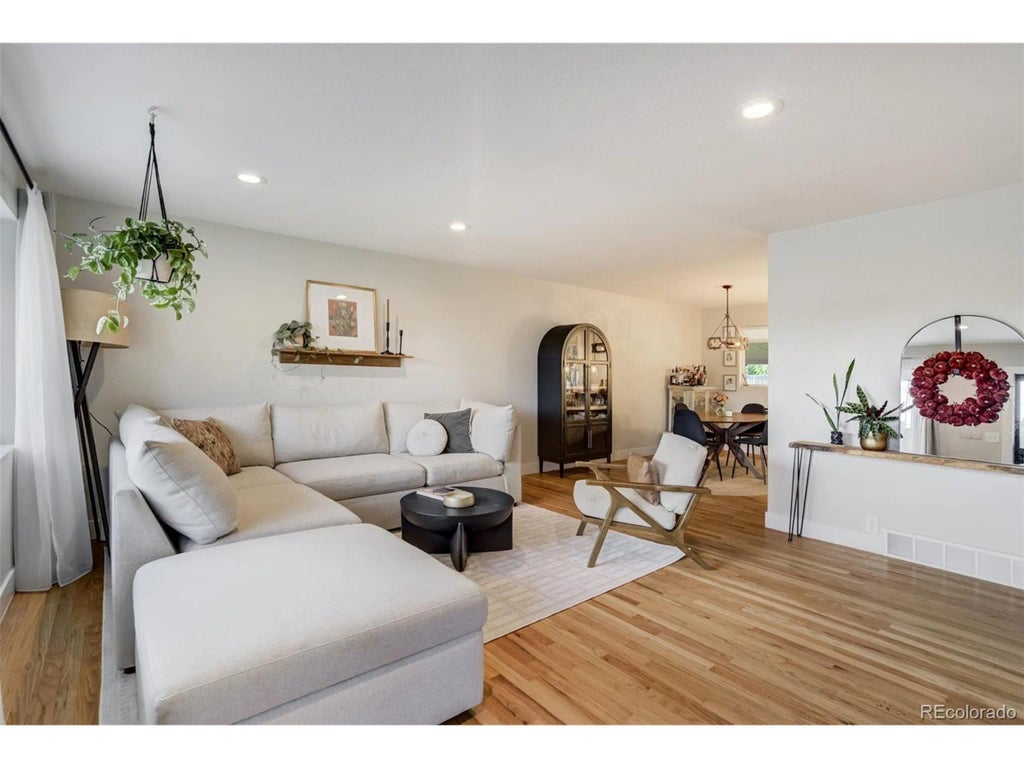 Looking for space, style, and a great location? This updated 5 bedroom, 3 bath ranch in Centennial Acres has it all. Step inside to hardwood floors and lots of natural light. The kitchen is the heart of the home with quartz counters, stainless appliances, and a breakfast bar that's perfect for morning coffee. Three main floor bedrooms and two updated baths make everyday living easy. Downstairs, a fully finished basement gives you two more bedrooms, a big family room, and plenty of room to spread out. Out back, enjoy Colorado evenings on the covered patio and a large fenced yard ready for BBQs, pets, or playtime. Updates from 2022 include a new roof, radon mitigation system, hot water heater, and an upgraded 220-volt electrical panel. With stylish finishes and Littleton schools nearby, this move-in ready home checks all the boxes.