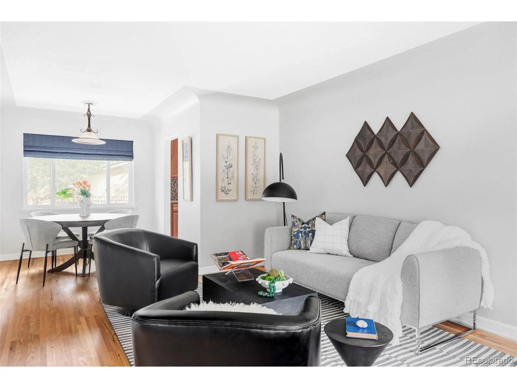 Charming character and modern updates converge in this thoughtfully maintained residence. An open-concept floorplan unfolds with a spacious living and dining area anchored by newly refinished hardwood flooring, ideal for both entertaining and everyday living. The chef's kitchen boasts granite countertops, a tiled backsplash and stainless-steel appliances, while a conveniently located main-floor laundry area adds functionality. The primary suite presents a private retreat with a sizable closet and an en-suite bath. Two additional bedrooms provide versatile living space, each filled with natural light and comfort. Outdoors, a fenced backyard with a patio and dog run offers the perfect balance of relaxation and recreation. With an oversized two-car garage with 110 and 220 power, this home delivers rare convenience in a highly connected location. Situated in central Denver, residents enjoy easy access to the light rail, major highways, outdoor recreation and the city's vibrant cultural scene.
