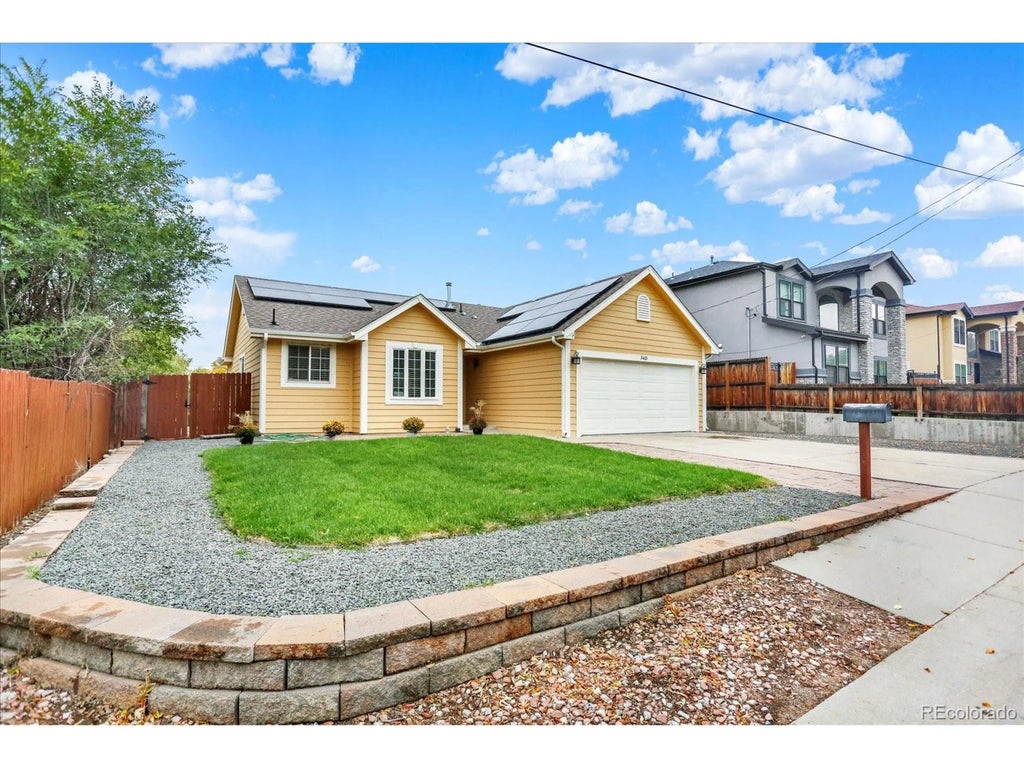 Welcome to 3415 S Clay Street! This 3-bedroom, 2-bath ranch home features an open layout with vaulted ceilings, hardwood floors, and a beautifully updated kitchen with granite countertops. Enjoy natural light throughout, a private fenced backyard, and an oversized 2-car garage. Solar panels help lower utility costs, while built-in wireless speakers in the main area create the perfect space for entertaining. Ideally located near highways, light rail, and just minutes from Denver.