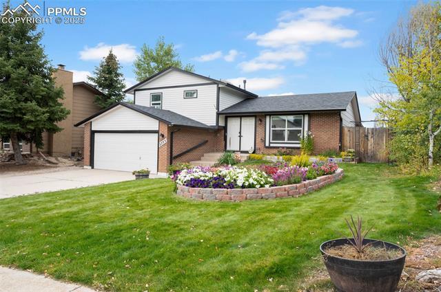 Home shows as well outside as inside! The flower gardens are in full bloom and gorgeous! This is a fabulous 4 bed, 4 bath home with an attached 2 car garage! Owners have done some remodeling and they've done an awesome job! Step into pleasant entry that leads to the living room with vaulted ceiling & large window! The main level has easy maintenance plank wood flooring. All kitchen stainless appliances are included along with a double oven range! You'll love the granite countertops, the backsplash & all the underlit cabinet space! Just around the corner is the formal dining area which has attractive lighting and views! The easy maintenance wood plank flooring extends to the family room on the lower, walk-out level. The attractive wood burning fireplace is surrounded by stonework and it really makes this room look special! Upstairs you'll find 3 bedrooms. The Primary Bedroom enjoys a walk-in closet and a remodeled bath with walk-in beautifully tiled shower and there's room enough for 2! The 2 other bedrooms on the upper level are carpeted & enjoy Pikes Peak Views! The lowest level has a carpeted family room, bedroom, bathroom, access to garage, & storage & mechanical. Walk-out to the gorgeous back yard and you'll say, "Wow"! Invite friends and family over for a barbecue on the 40 x 16 covered patio! The fenced back yard also has a 12 x 9 shed! Home has central air, 2 year old class 4 (hail resistant) roof with new 6 inch gutters, a new electrical panel and several windows in home and in back yard have Pikes Peak views! Front & back yard are fully landscaped with sprinkler system. Garage has extra storage/workshop space. Home is a short walk to Frontier Elementary School, Rampart High School & Ford Frick Park. It is also near King Soopers & lots of restaurants! You'll fall in love with this home when you walk in! It's immaculate and ready now!