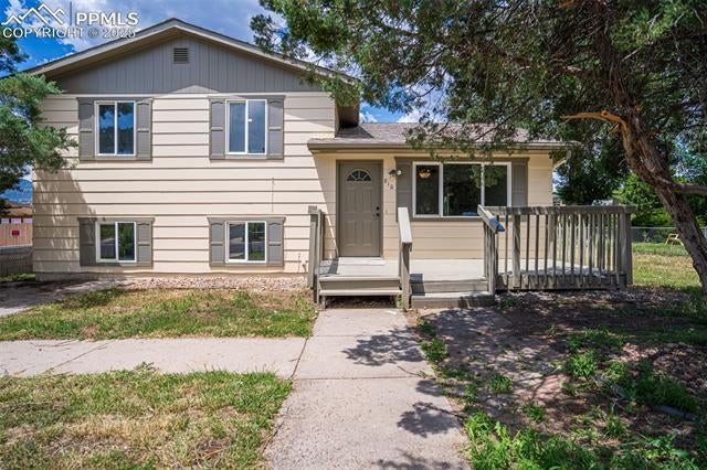 Beautifully remodeled try level 4 bed 2 bath home located southern Colorado Springs. Appreciate the large yard with open space and mountain views. New flooring to include LVP and carpet throughout. Brand new appliances in the kitchen and new paint throughout. The space has been utilized very well boasting 4 bedrooms and a large living area on the lower level.
