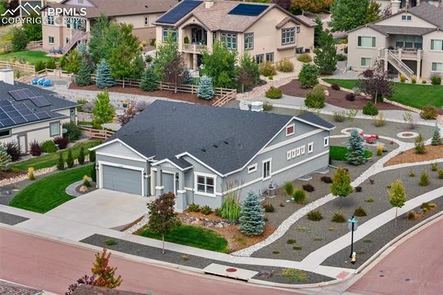 Nestled on a spacious corner lot, this exquisite ranch-style home offers a perfect blend of luxury and comfort in the highly sought-after Flying Horse community. With a seamless open-concept floor plan, this home is designed for modern living and entertaining. The beautiful hardwood floors flow throughout the main level, complementing the airy and bright spaces. At the heart of the home is the gourmet kitchen, complete with top-of-the-line appliances, custom cabinetry, and a large island — an ideal space for culinary enthusiasts. Whether you're hosting friends or enjoying family meals, the kitchen effortlessly connects to the expansive living and dining areas. The home features four generously sized bedrooms, including a luxurious master suite, providing ample space for relaxation. A dedicated office provides the perfect work-from-home setting, while the fully finished basement offers additional living space for recreation, entertainment, or a home theater. This home is packed with high-end upgrades, including premium fixtures and sophisticated finishes, ensuring both style and functionality. Step outside and enjoy the private, beautifully landscaped corner lot, offering a perfect setting for outdoor living. The home is just a short walk from a scenic park, adding to the tranquil atmosphere of the neighborhood. Living in Flying Horse means access to top-tier amenities, including a community center, resort-style pool, an exceptional golf course, and a highly rated restaurant. Plus, with the home located within the prestigious School District 20, you’ll be close to several schools. Don’t miss the chance to own this exceptional property in one of Colorado Springs’ most desirable communities!