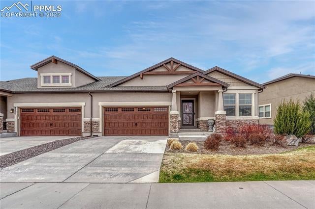 This former show home is as good as new. Pre-inspected! Must see this fantastic four bedroom, three bathroom, two car garage patio home! The garage is finished, and this is the only home in the area that has a gate to the serene, gated greenspace behind the home. Peaceful and inviting patio just a step outside the dining room. Wonderful floor plan with two bedrooms on the main level, ensuite master bath, and two very good sized bedrooms in the basement. This home has walk-in closets in most bedrooms. It was designed for main level living, and for plenty of storage. Kitchen is stubbed for gas if that is preferred for cooking. Also, whole house humidifier and surge protector. This home has luxury vinyl plank floors throughout the main level. Beautiful and peaceful gas fireplace on the main level. This is the only unit in the neighborhood that has backyard access to the open space (grandfathered in). Quiet area and quiet part of the community. Easy commute anywhere on Powers Corridor, and to Schreiver AFB/SFB and Peterson. HOA takes care of all exterior and landscaping except the fenced-in backyards. Enjoy carefree living in this stellar, nearly new patio home!