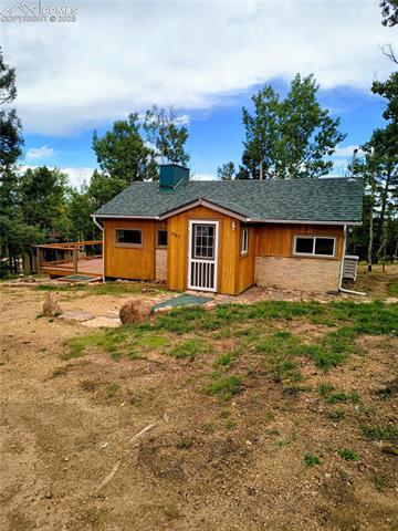 Welcoming Cottage in the Woods: Located on quite 3 resident cul-de-sac, nestled among mature trees; Perfect Tiny home, Week-end/Vacation Getaway. Single story cottage with sleeping loft -- Recently updated: Living Room - Full Kitchen Open Concept 11.6 X 15.10 , Fireplace with Wood Burning insert, Dining Nook 7 X 6 , 1 Bedroom 8 X 7.6, Sleeping Loft 5 X 8, 1 Full Bathroom 6 X 8, Bonus Room 60 sq ft, Outdoor Storage Shed 12X8, Knotty pine walls in Living Room/Kitchen and Bedroom. Large Deck just waiting for entertaining guests, or just a quiet morning with a cup of coffee, watching the deer and wildlife and enjoying the outdoor beauty. Recent updates: New genuine redwood 12 X 16 deck with side entrance to cabin. Interior; Kitchen new stainless-steel stove and refrigerator, granite countertops, granite eating bar with stools, situated in nook right off kitchen. Close to entrance to the deck. Bathroom, newly tiled shower with bathtub. New genuine hickory floors in Kitchen, Living Room, and Bedroom. New Carpet in Bonus Room. Exterior: New Shingle Roof, Newly painted exterior trim, wood siding sealed. Updated Electrical Service 2021. Plenty of room for parking your RV. This property is accessible to VA-eligible buyer offers and the seller is open to discussing seller-carried terms (OAC). Nearby Amenities: Outdoor Recreation: Nearby, 1/2 mile access to Pikes Peak National Forest at the end of Blossom Rd., which offers miles of OHV (Off Highway Vehicles, i.e. ATV's, dirt bikes, etc.), trails. Hiking, Biking, Cross-country Skiing, and Hunting. Shopping: Woodland Park: Walmart, Walgreens, City Market, Safeway, Woodland Hardware and Home, Colorado Building Supplies. Dining Out: A variety of dining Cuisines available, Restaurants with dine in or carry out and Several Fast Food restaurants to select from. Medical, Pikes Peak Regional Hospital.