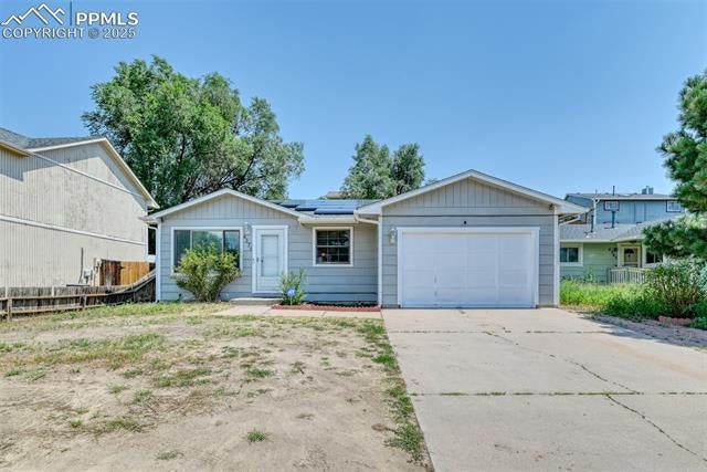 Welcome home to this beautiful 4 bed, 2 bath, 2 car garage home, conveniently located just minutes from Fort Carson & Pikes Peak State College. As you enter the home, you will find the living room with gorgeous flooring. Also on this floor is the eat in kitchen, primary bedroom, 2nd bedroom, and full bathroom. Downstairs has a great family room, a 3rd & 4th bedroom, another full bathroom, & laundry. This home has a/c and solar power!