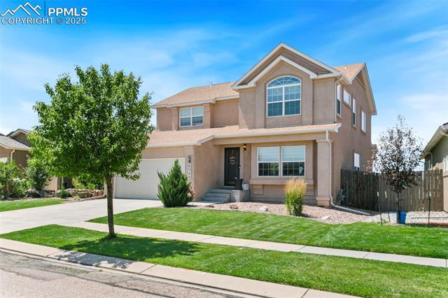 You must see this beautiful 2-story home in the very popular Cumbre Vista neighborhood. This attractive home has very impressive wide-plank wood flooring throughout the main level. The living room has an added window seat and has an adjoining dining room as well. Upgraded maple cabinets in the kitchen, granite countertops, pantry, and a kitchen opening to the dining area are added features. The family room and kitchen are connected by a dining area that walks out to the covered extended deck. One can enjoy the awesome views of Pikes Peak! An added bonus is the beautiful lower level stamped concrete patio area with a rocked firepit and seating area. A perfect area for outdoor entertaining! This lovely home also has four upper bedrooms, a fifth bedroom in the basement and a large lower-level rec room! Lots of room for everyone! Don't miss this one!