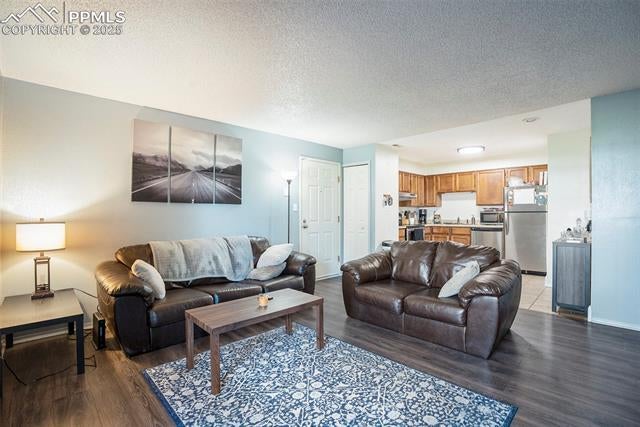 Home Sweet Home! This bright and open 2-bedroom, 1-bath ground-level end-unit condo offers both comfort and convenience. With 880 sq ft of well-designed space, the open-concept kitchen flows seamlessly into the living area, making the home feel even more spacious. Enjoy hardwood floors in the living room and sliding doors from both the living room and the primary bedroom that open to a covered patio with additional storage. The kitchen comes fully equipped with a stove, dishwasher, and plenty of counter space. Stackable washer and dryer hookups are also included for added convenience. HOA dues cover exterior maintenance, lawn care, snow removal, and trash service. Assigned parking is included. Ideally located near shopping, dining, schools, and parks—with Sand Creek Trail just steps away for nature lovers and outdoor enthusiasts. Come see this hidden gem today!