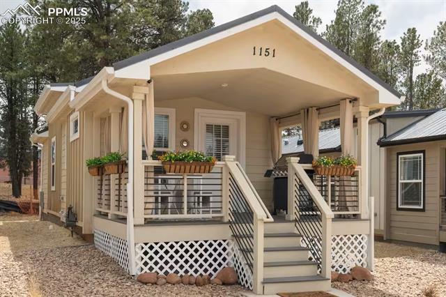 Modern comfort meets mountain simplicity. Beautiful new IBC modular home featuring an open-concept kitchen and living area, private office, and bedroom. Enjoy your front deck, relaxing hot tub, off-street parking, and conditioned storage below. City utilities, snow removal, and a welcoming community just minutes from downtown Woodland Park — perfect for downsizing, first-time ownership, or a smart investment.