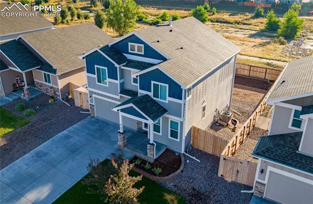 Welcome to Carriage Meadows North in Lorson Ranch, where comfort meets convenience in this beautifully maintained two-story home backing to open space. Built in 2019, this spacious 4-bedroom, 3-bath residence offers nearly 2,800 square feet of living space and is ideally located near schools, parks, and military installations. Step inside to an inviting open-concept main level featuring plank wood flooring, a bright living room, and a modern kitchen with stainless steel appliances, a large center island, and a walkout to the 10×10 composite deck—perfect for summer BBQs and quiet evenings overlooking the trail behind. A main-level office and half bath provide excellent flexibility for remote work or guests. Upstairs, you’ll find four bedrooms, including a generous primary suite with vaulted ceilings, a five-piece bathroom, and a walk-in closet. The upper-level laundry makes chores simple and efficient. The full unfinished basement offers endless potential for future expansion—whether you dream of a home gym, theater, or additional bedrooms. Additional highlights include central A/C, ceiling fans, a fenced backyard with dog run, automatic sprinkler system, and a two-car attached garage. This home offers both value and opportunity, so don’t miss your chance to own a move-in ready home in a great neighborhood—schedule your private showing today and make this wonderful home yours!