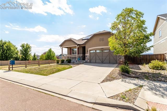 This beautiful home sits on a corner lot with great views of Pikes Peak from the kitchen/dining area. It has an open concept living area that is perfect for entertaining. The kitchen features a gas stove, range/oven plenty of counter top space (granite) and cabinet space. The dining area has great views of Pike Peak offering a walk out. This home has a unique floor plan with three bedrooms featured on the main level. The overly large basement/family room offers a 4th bedroom with a full bath and storage. The back yard is full fenced with lush lawn and mature landscaping. This home also features a solar system at no additional cost to the buyer. The home is also pre-wired for a security system. This home is truly a gorgeous home with a beautiful view.