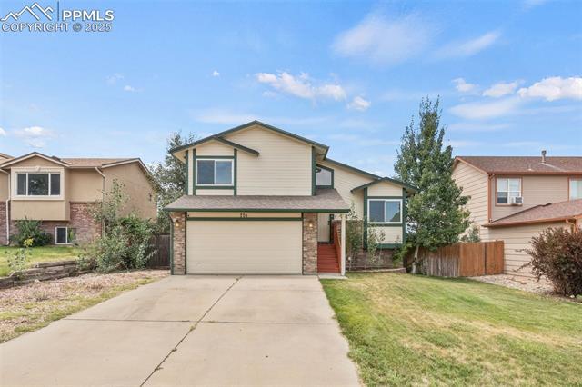 Enjoy Front Range Views from This Spacious, Well-Maintained Home! Located in a conveniently located neighborhood, this inviting property offers sweeping mountain views from the back deck and plenty of functional living space across four levels. The main level features laminate wood flooring and vaulted ceilings that enhance the open feel. The kitchen includes updated appliances, a pantry, and a dining area with a walk-out to a large patio, perfect for taking in the Front Range scenery. The lower level offers a spacious family room with a fireplace and natural light from large windows. The basement includes tile flooring and offers potential for an additional living area, bathroom, or junior suite setup. Upstairs, the primary suite includes a private ¾ bath, and two additional bedrooms share a full bath. Additional highlights include an oversized garage and a generous yard. Conveniently located near military installations, shopping, and schools.