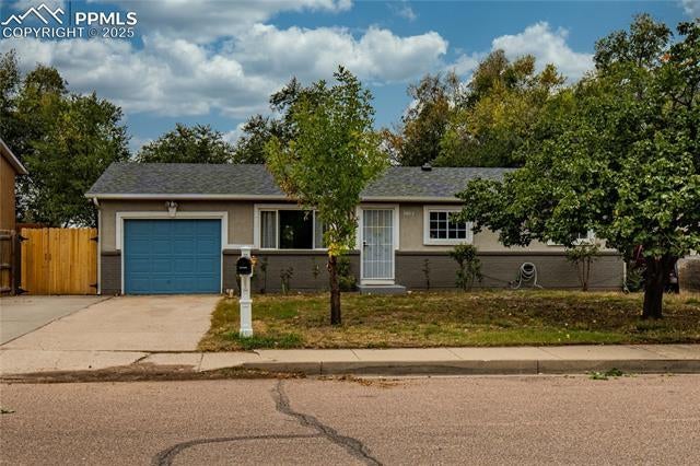 Beautifully updated one-level 4-bedroom home—rare for this area! Enjoy great natural light, a large primary bedroom, and thoughtful upgrades throughout. Nearly everything is new: roof with Class IV impact-resistant shingles, furnace, water heater, washer and dryer, stainless-steel appliances, carpet, paint, and more. The dining room opens to the great room for easy entertaining, with the kitchen set just beyond the dining area and featuring new under-cabinet lighting for a warm, functional workspace. A walkout from the dining room leads to the fenced backyard with mature shade trees, storage shed, and chicken coop—perfect for hobby or homestead living. The garage has been thoughtfully converted into a versatile finished space with a side door walkout and existing garage door—ideal for a workshop, home gym, studio, or extra storage, adding valuable flexible square footage to the home. Conveniently located near schools, shopping, parks, and military bases, with school choice and nearby charter options such as Atlas Prep available to families in the area. Property is being sold AS IS.