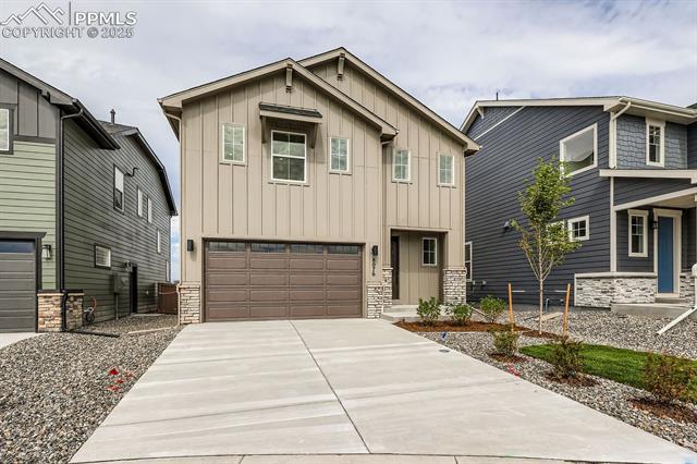 This distinctive 2-story home combines comfort and style with a functional layout, perfect for modern living, and the designer upgrades will be sure to capture your attention. The inviting front porch is a thoughtful touch that welcomes you into an open main level that seamlessly integrates the kitchen, dining area and family room, creating a warm and spacious atmosphere. A convenient powder bath is also located on this floor, and there's a cozy fireplace too, for added charm. The functional kitchen layout offers plenty of counter space for entertaining and don't forget about all of the enjoyment you'll experience in your fully landscaped yard with rear privacy fencing. Upstairs, you'll find a versatile loft space, ideal for recreation or relaxation. The spacious primary bedroom is a serene sanctuary with a large bathroom that includes an upgraded 5 piece bath. Two additional bedrooms, a full bath and a wall-placed laundry space complete the upper level. A 2-car attached garage with an 8' door and a garage opener ensures ample parking and storage, making this home as practical as it is beautiful. You'll love the distinctive exterior with added stone. This home offers flexibility and timeless appeal.