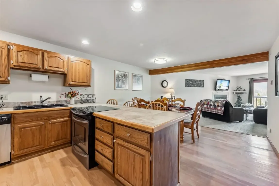 Huge price reduction! This 2-bedroom, 2-bathroom condo in Snowscape is a nature lover's ultimate oasis. Located in Wildernest/Silverthorne, it’s south-facing and offers incredible views with direct access to open space. Feels like a secluded cabin in the woods with a private balcony. This residence has a large and very open kitchen, dining room and living room. Great for hosting guests or a large family. Both bedrooms have a bathroom. Large crawlspace for additional storage. The complex features a clubhouse with a pool, hot tubs, and a sauna for ultimate relaxation. Enjoy miles of nearby hiking trails, including the popular Salt Lick Trail and Lily Pad Lake. Just minutes from world-class ski resorts like Keystone, Breckenridge, and Copper Mountain, and on the free bus route for easy access to all. The perfect blend of mountain living and convenience!
