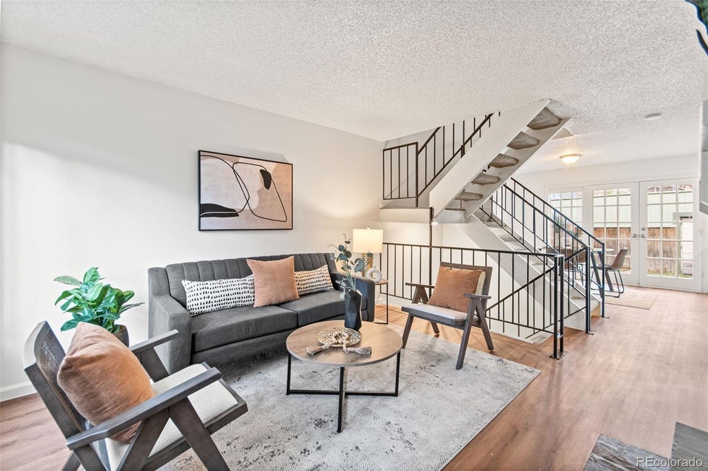 Bright, Updated Townhome with Private Yard & PRIVATE 2 CAR GARAGE! This move-in ready 2-story townhome features updated finishes, wood floors, fresh paint, and a versatile basement space. French doors open to a private fenced yard with patio, fire pit area, and direct access to a peaceful community garden. Located near Cherry Creek State Park, light rail, and local shops, this home offers comfort, convenience, and outdoor charm in one great package!