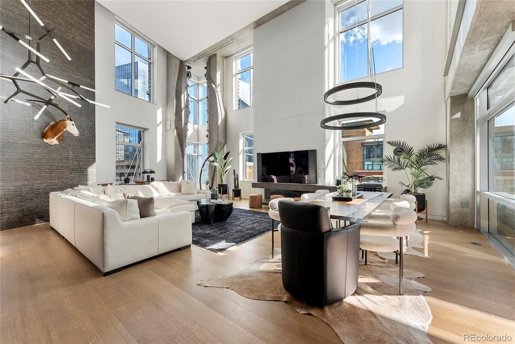 Perched atop one of the most desirable buildings in Downtown Denver, Penthouse 6 is a rare opportunity to own a custom-designed, multi-level residence in the heart of Riverfront Park—arguably the city’s most refined and walkable neighborhood. Encompassing over 4,000 square feet of artfully curated interiors, this penthouse offers a rare blend of architectural sophistication, privacy, and sweeping mountain-to-city views that frame every living space. Completely reimagined with no expense spared, the residence is anchored by a showstopping chef’s kitchen with Miele appliances, a built-in espresso machine and steamer, and striking leathered granite waterfall countertops—all flowing seamlessly onto a private terrace ideal for al fresco dining. The soaring living room impresses with dramatic volume, a bespoke 12ft glass fireplace, a rock climbing wall, designer wall tile, and floor-to-ceiling windows that flood the home with light. Additional main-floor highlights include a chic guest suite, custom powder room, cozy reading lounge beneath the architectural staircase, and a full-sized laundry room. Upstairs, the serene primary suite is a true sanctuary with a private balcony, spa-like five-piece bath, sauna, custom walk-in closet, and an additional washer/dryer. Two additional bedrooms and a loft lounge with outdoor access complete the upper level. Penthouse 6 is the only unit in the building with a fully private rooftop deck—an exclusive outdoor retreat with a hot tub and panoramic views. The home is powered by a Savant automation system, giving you full control of lighting, climate, and media from your phone. Includes three oversized deeded garage spaces in a secure, heated building. Residents enjoy professional management, premium amenities, and direct access to Commons Park, Confluence Park, Union Station, Larimer Square, the Ballpark District, and Denver’s best dining and cultural venues. A lifestyle of elegance, privacy, and connection to the city’s very best.
