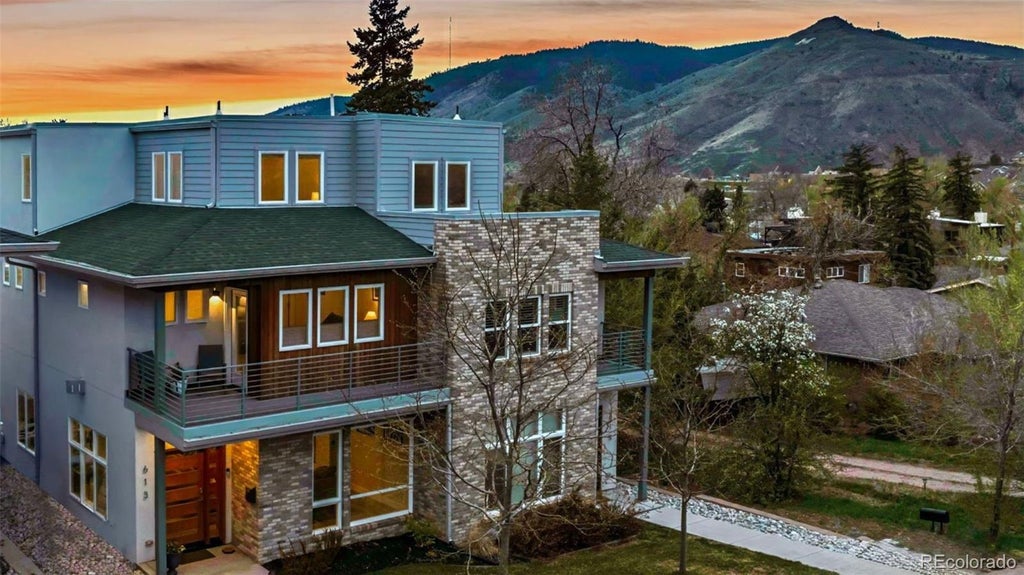 Welcome to the quaint and historic town of Golden, Colorado, where this exceptional modern residence offers not only luxury living but also a highly desirable location and lifestyle. Built in 2019 with thoughtful design and high-end finishes throughout, this home is a perfect blend of contemporary elegance and mountain-town charm. The seamless flow of the open-concept main level creates an inviting atmosphere ideal for entertaining or quiet nights at home by the stacked stone fireplace. The living room drifts perfectly into the beautifully appointed kitchen featuring a walk-in pantry, granite countertops, and abundant modern cabinetry, showcasing a distinct style. The kitchen also exhibits superb functionality, accommodating al fresco dining outside under the pergola, eating at the oversized island, or formal meals in the dedicated dining area. Ascend to the upper level, where the expansive primary suite offers a spa-inspired 5-piece bath and a private balcony showcasing sweeping northern views. Two spacious bedrooms, a stylish shared bath, and the laundry complete this level. The top floor is a refined retreat featuring another bedroom, a sophisticated lounge/game room, an elegant wet bar, a full bathroom, and access to an expansive deck—perfect for savoring breathtaking sunsets. The fully finished lower level extends the living space with a guest bedroom, spacious great room, full bath, and generous storage. Outside, a detached 2-car garage provides ample room for vehicles and all your Colorado lifestyle essentials. Just steps from some of Golden’s iconic activities, this home offers immediate access to hiking, biking, and climbing adventures. Clear Creek and its scenic canyon path are just minutes away, and stroll downtown to enjoy boutique shopping, breweries, local museums, vibrant arts, fine dining, or community events. This is more than a home, it’s an opportunity to create the authentic Colorado lifestyle in one of the state’s most sought-after communities.