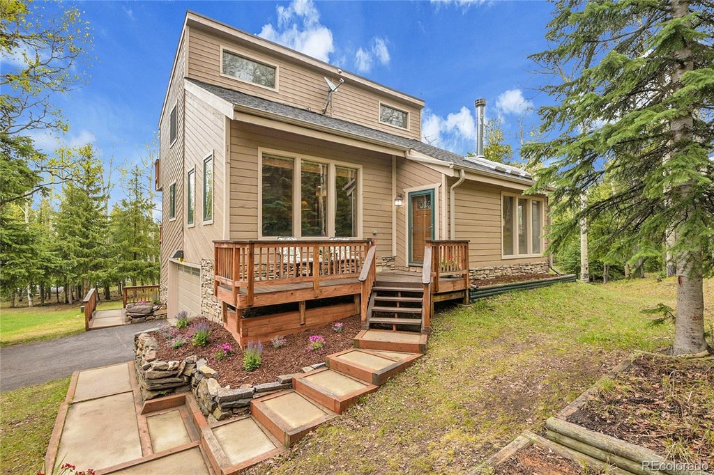 Welcome to your private mountain sanctuary nestled on 5 gentle, usable acres of pristine land. This stunning property offers the perfect blend of modern comfort and natural serenity, featuring an open-concept main level with soaring ceilings that flood the space with natural light. The recently renovated kitchen and bathrooms are complemented by brand-new flooring throughout. Upstairs, discover generously sized bedrooms with vaulted ceilings and abundant windows. You'll love the view of the snowcapped peaks from the primary bedroom. The property includes a massive, detached garage/shop with oversized doors - perfect for RV storage or creating your dream workshop - complete with a large air compressor and enough height for a lift. Above the garage is a bonus recreation room ideal for entertainment or escape. Recent 2025 upgrades include a new roof on both the house and garage, a new energy-efficient furnace, and modern sliding glass doors throughout. High-speed internet is available via Clear Creek broadband. Experience the tranquility of nature with frequent wildlife visitors and complete privacy from neighboring properties. Would you like to schedule a private viewing to experience this perfect balance of modern living and mountain serenity?
