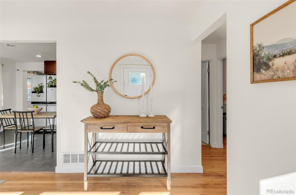 Brimming with character and modern updates, this charming home is nestled in Windermere, just moments from historic Downtown Littleton. A welcoming living room showcasing original hardwood flooring is flooded with sunlight from an array of windows. Featuring a new refrigerator, the open kitchen offers generous cabinetry. An adjacent laundry area with a washer and dryer set is an added convenience. The flexible layout offers two front bedrooms and a full bath, ideal for guests or a home office. A spacious primary suite boasts an en-suite bath with a walk-in shower and new windows for added comfort. Outside, a private backyard awaits with a large patio gently shaded by mature trees and raised garden beds — the perfect setting for enjoying dining and relaxing al fresco. Thoughtful upgrades include new siding with a lifetime warranty (2023) and a new front door and framing. With a detached garage and a prime location near parks, shops, dining and transit, this home is truly move-in ready.