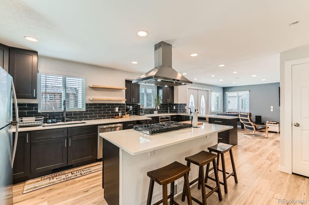 PRICE REDUCTION AND MOTIVATED SELLER! Also, NO HOA! Completely renovated main level - gorgeous kitchen! A bright entry welcomes you with warm finished hardwood flooring and high ceilings. Newly remodeled and expanded kitchen has it all! Quartz counters with "Modern Slate" dark cabinets and all new stainless steel appliances are a modern upgrade that you'll be excited about! Wine cooler and wet bar, 36" gas range with SS range hood. Double doors in the den open to the backyard. Upstairs has 3 bedrooms plus open loft. The finished basement has additional living space to expand plus a 4th bedroom and 4th bathroom and washer and dryer location. New roof: 2019; New windows: 2017/2023; New water heater: 2022; New AC:2018. Conveniently located in a nice neighborhood, check this one out today!