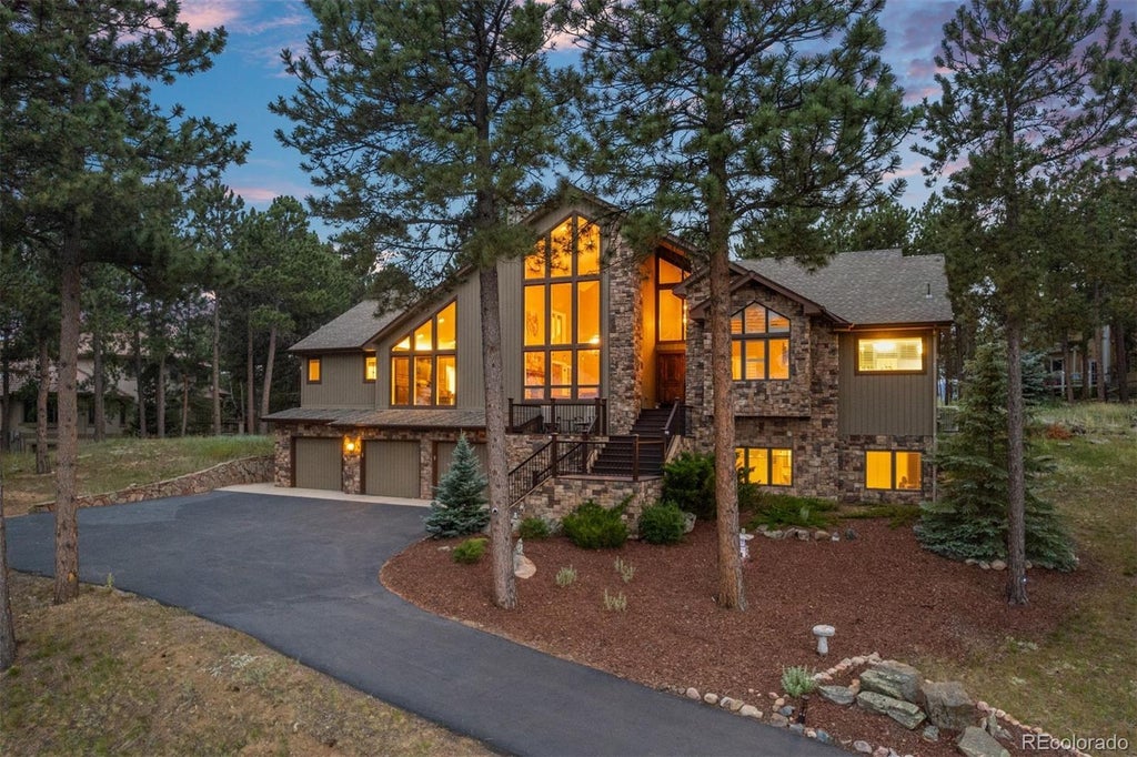 OPEN HOUSE Oct 3rd 3-6pm! Nestled in the Foothills of the Rocky Mountains, your Colorado dream home awaits! Located in a quiet cul-de-sac within the highly desirable Ridge at Hiwan, this spectacular mountain contemporary home has been fully remodeled with impeccable attention to detail—offering true turn-key living and undeniable pride of ownership. Step inside to find soaring vaulted ceilings with exposed timber beams, rich hardwood floors, and a striking stone fireplace that anchors the main living space. The gourmet chef’s kitchen is a showstopper, featuring top-of-the-line Wolf stainless steel appliances, an ice maker, beverage fridge, and custom granite countertops that elevate both function and style. A wall of windows across multiple rooms frames breathtaking views and fills the home with natural light. Spend evenings unwinding on the covered back deck with majestic sunsets or enjoy your morning coffee on the front deck, taking in the serene foothill scenery. The main level offers three spacious bedrooms, including a luxurious primary retreat with a spa-inspired bath—featuring dual vanities, a jetted soaking tub, oversized walk-in shower with multiple showerheads, and two walk-in closets. A junior suite with a private bath and loft, plus an additional main floor bedroom, provide flexible living options. The finished lower level offers even more versatility with a large bonus/media room that could easily serve as a fourth bedroom with its full bath and closet. Plumbing is in place for a future wet bar or kitchenette, and there's also a dedicated workout area. The oversized 3-car garage includes a workshop and a generous storage room—perfect for all your Colorado adventure gear. The beautifully landscaped and fenced backyard is ideal for pets and outdoor entertaining. All of this is just minutes from the parkway and I-70, offering a quick and convenient commute to Denver or the mountains. Residents also enjoy access to an extensive trails in the community.