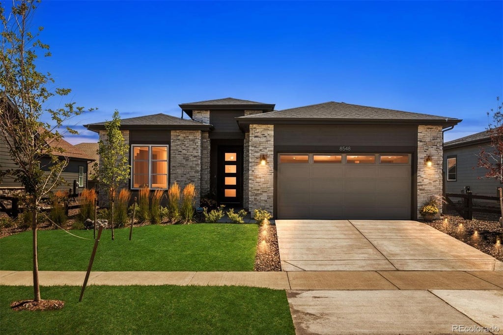 Perfectly situated across from Sunset Park in Hilltop at Inspiration, this thoughtfully designed ranch home captures year-round sunsets and easy, low-maintenance living. The open floorplan seamlessly unites the great room, dining, and chef’s kitchen, creating a light-filled space ideal for entertaining and everyday comfort. The kitchen is a true centerpiece, showcasing an expansive island, granite countertops, upgraded appliances, soft-close cabinetry with pull-out shelving, and a generous walk-in pantry. The private primary suite is a serene retreat with a spa-like bath featuring a no-glass walk-in shower and a custom-designed closet. Throughout the home, you’ll find designer flooring, elegant paint selections, stylish window coverings, and a striking fireplace for added warmth and character. Solar panels, EV charging readiness, and a SimpliSafe system combine modern convenience with peace of mind. The oversized two-car garage includes built-in storage, while the unfinished basement with rough-in plumbing offers room to grow. Relax in the backyard with peaceful morning light, or unwind on the front porch as the sun sets over the park. Nestled in Aurora’s premier 55+ community, Hilltop at Inspiration, residents enjoy access to a private clubhouse, fitness center, pickleball, trails, and an active calendar of clubs and events. With Southlands shopping and dining just minutes away, this home delivers luxury, comfort, and community all in one.
