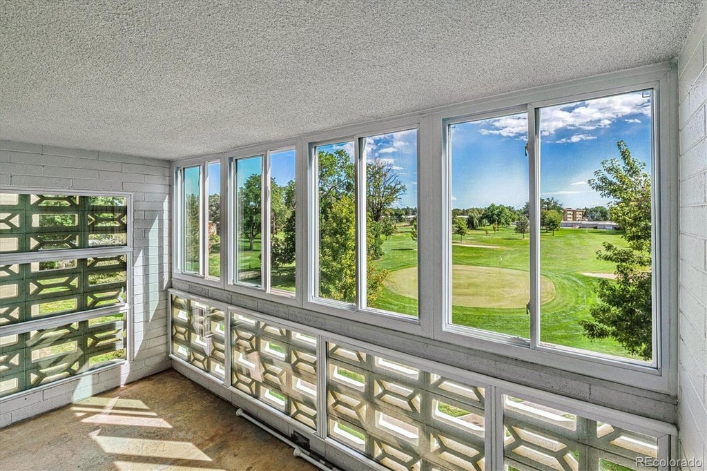 One of the best golf course views in Windsor Gardens- this condo is 1200 sf, with 2 bedrooms, 2 bathrooms, and includes a 1 car detached garage! Priced to sell- this condo offers spacious rooms and golf course views from both bedrooms and lanai. The kitchen includes the existing appliances, and lots of cabinet space plus double sided pantry. Double pane vinyl slider door and vinyl glass/screen lanai enclosure- included! Both living room and primary bedroom include digital wall a/c units. Multi-purpose room offers shelving for lots of storage- or can turn this into mini-office/hobby space. Bonus storage room on same floor in building. If you are looking for a condo to update to your liking- in an amazing location, this is the one! **Windsor Gardens is Colorado's Largest Age 55+ Active Adult Living Condo Community. Did you know? Monthly HOA Dues include annual property taxes! And heat, water, sewer, trash, round-the-clock patrolling community responders, full time onsite association management, grounds/building maintenance, and activities department. Enjoy clubhouse amenities such as fitness center, indoor/outdoor pools, hot tub, sauna, billiards, library, craft rooms for ceramics, sewing, woodworking, and 9 hole par 3 golf course and onsite restaurant both open to the public. Stay engaged with a wide array of activities, clubs, and events scheduled every month. Additional features include garden plot program, private walking trail and nature preserve, and RV/Boat storage. The Highline Canal runs full length along south side of the complex. RTD Bus Stops located thru-out the community. FHA/VA approved. Close to restaurants, stores, shopping…Minutes to Lowry, Hwy 225, Cherry Creek…Easy access to DIA and downtown. Come see for yourself what Windsor Gardens has to offer. ©2021**