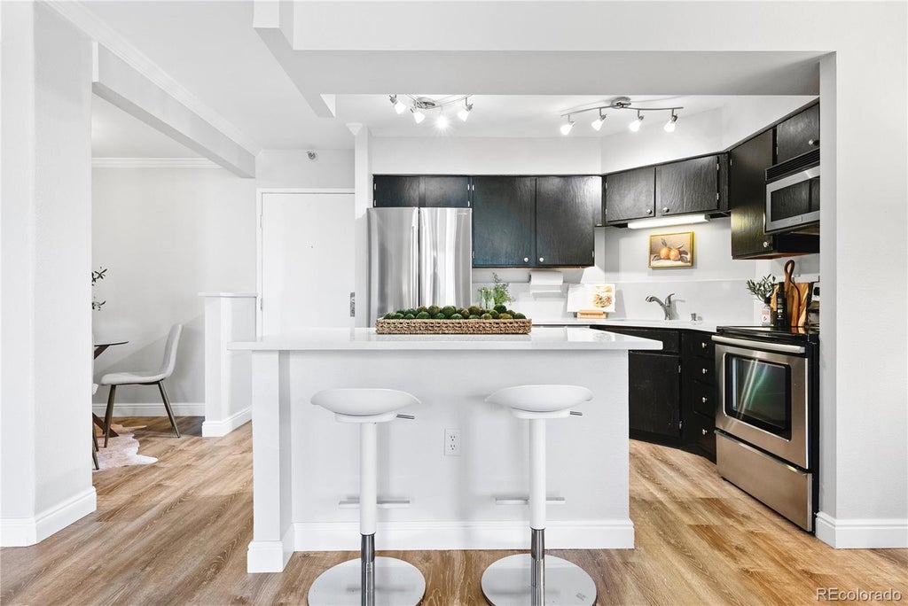 Modern,hip and sophistication await in this 2/2 condo in iconic Lincoln Park in The Denver Building.Enjoying an enviable location with easy access to the light rail and freeway, this residence places you in the heart of Denver!Revel in breathtaking views and unbeatable convenience.The modern and stylish interior offers stunning vistas of the city skyline.Step inside to discover a beautiful space boasting spacious open-concept kitchen with center island with bar seating, stainless appliances and ample counter space.The living room provides access to a generously sized balcony, perfect that first cup of morning coffee or al fresco dining while admiring the city lights .This home boasts a dedicated dining area, and two spacious bedrooms with French Doors,each large enough to accommodate a king-size bed.The secondary bedroom is staged as an office, perfect for today's remote work option. Residents also enjoy resort-style amenities: pool, hot tub, gym, movie theater, fire pits, clubhouse, and more. Just steps from grocery stores, top-rated restaurants and all that Downtown Denver offers! Both bedrooms offer lovely views and ample closet space, aunique feature in city living.This unit includes 2 garage parking spaces and a storage unit. One or both of the parking spaces can be rented out for additional income.This 2nd floor location is ideal, never a need to take the stairs or elevator, you come in right on the 2nd level from the secure parking garage, offering secure, covered, one-level living in the heart of the city! Just blocks away from the light rail, Santa Fe Arts District, Cherry Creek Path, and all the fantastic dining, shopping, and nightlife options that Downtown Denver has to offer! Amenity-laden HOA covers a ton, please refer to details on what it covers, it has real value.WEST ELM High-END Furniture and Flat Scrren and Sound Bar are all NEGOTIABLE!