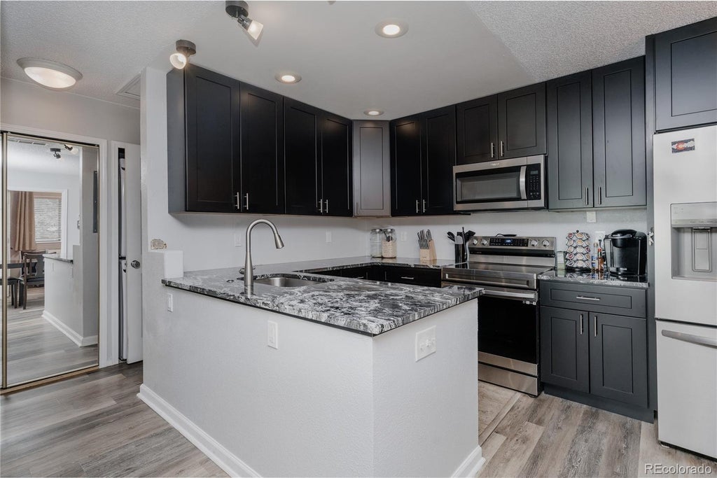 Welcome to Spanish Oaks, where classic design meets modern convenience! This beautifully updated split-level condo offers vaulted ceilings with recently cased skylights, an open floor plan, and a private deck, ideal for morning coffee or evening relaxation. The newly remodeled kitchen features brand-new soft-close cabinets, granite countertops, stainless steel appliances, and a cozy dining area. The spacious primary suite includes ample closet space and an en-suite bath, while the den provides a versatile space for an office, reading nook, or nonconforming second bedroom. Recent updates include newer flooring, light fixtures, AC, electrical, and hot water tank, providing both style and peace of mind. The open living and dining areas flow seamlessly, creating a bright, welcoming atmosphere perfect for entertaining or everyday living. Enjoy all the amenities of the sought-after Spanish Oaks community, including a pool, spa, and beautifully landscaped grounds. Conveniently located near shopping, dining, and entertainment, this condo offers both comfort and convenience in a desirable setting. Hurry and schedule a showing today!