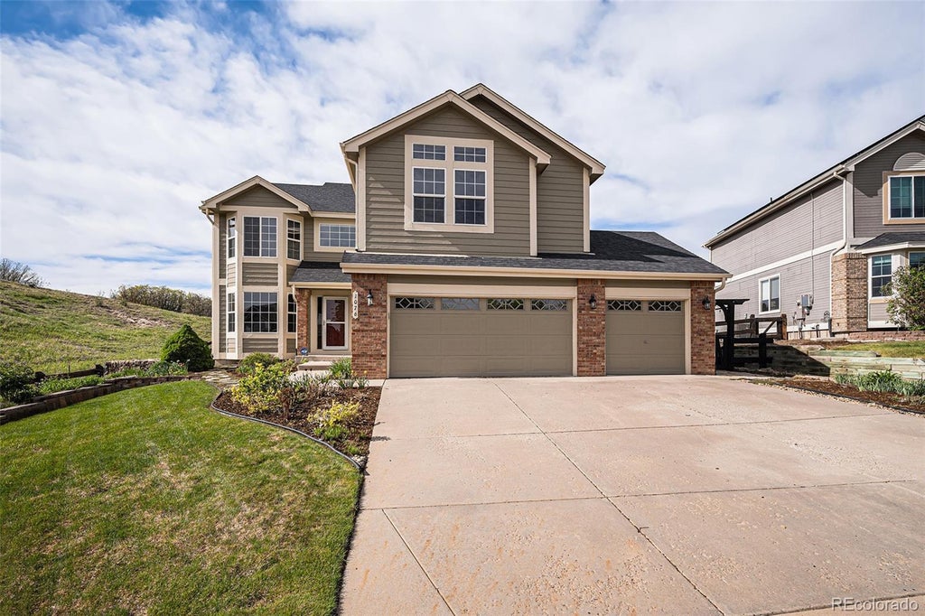 Stunning Golf Course Home with Mountain Views & Privacy! Nestled along the fairways of Red Hawk Golf Course, this beautifully updated 3-bedroom, 4-bath home with a finished basement and 3-car garage offers luxury living with breathtaking views and exceptional privacy. Positioned near the 7th tee box—away from stray golf balls—the home enjoys only one adjacent neighbor and sweeping golf course views wrapping around the east side of the property. Step inside to soaring ceilings and rich hickory hardwood floors that create a warm, inviting ambiance. The chef’s kitchen boasts stone countertops, updated appliances, ample prep space, and direct access to a covered back patio—perfect for entertaining while enjoying the scenic mountain backdrop. The spacious family room features vaulted ceilings and a cozy gas fireplace. A dedicated main-level office and powder room provide flexibility and function. Upstairs, the luxurious primary suite includes a large walk-in closet, a 5-piece bath, and a separate makeup vanity. Two additional bedrooms share a full bath, while a loft with picturesque views of Castle Rock adds charm and versatility. The laundry room is conveniently located on the upper level. Downstairs, the finished basement offers a large flex space and a full bath—ideal for a guest suite, home gym, or media room. Outdoors, you’ll find beautifully landscaped grounds, a flagstone walkway, gardens, and a serene covered patio—all with no neighbors to the east. Just minutes from downtown Castle Rock, I-25, and the Promenade shops, this rare gem blends comfort, style, and location.