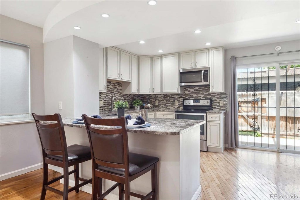 Great price! Great Opportunity! *Plus* Seller offering Buyer $5000 towards closing costs or off the price! Welcome to Your New Home in the Heart of the French Quarter! Ideally situated moments from shops, restaurants, & within blocks of local schools, this beautifully updated end-unit townhome offers comfort, convenience, and style. This charming 2-story residence features a detached 2-car carport, wood-burning fireplace, and finished basement perfect for additional living space, a home office, or generous storage. Modern elegance meets functionality in the fully remodeled kitchen w/newer white cabinetry, striking granite slab countertops, a sleek glass tile backsplash, stainless steel appliances, a breakfast bar with seating, and a bonus pantry for added storage. The main floor is spacious & versatile, ideal for both living and dining, & opens to a private, fenced-in patio off the Kitchen with a cozy garden area perfect for outdoor entertaining or quiet mornings.Upstairs, you'll find 2 generously sized bedrooms w/spacious closets with built-in shelving systems. The full bathroom, along w/an additional vanity area, has been tastefully updated w/granite countertops, contemporary fixtures, & modern cabinetry. Additional highlights include hardwood flooring on the main level, durable luxury vinyl plank flooring upstairs & in the basement, as well as updated vinyl windows & sliding door. Community amenities include: indoor pool, clubhouse, & party room ideal for social gatherings or relaxing weekends. The monthly HOA includes these amenities & all grounds/exterior maintenance, snow removal, trash/recycling, water/sewer. Enjoy the Cherry Creek Trail, Garland Park, and Tennis Courts nearby. Short walk to McMeen Elementary. Easy access to grocery, shops, restaurants, Cherry Creek Mall/shopping district, and downtown. Public Transit options are right there! This home blends thoughtful updates with unbeatable location and value. Don't miss your opportunity to make it yours!