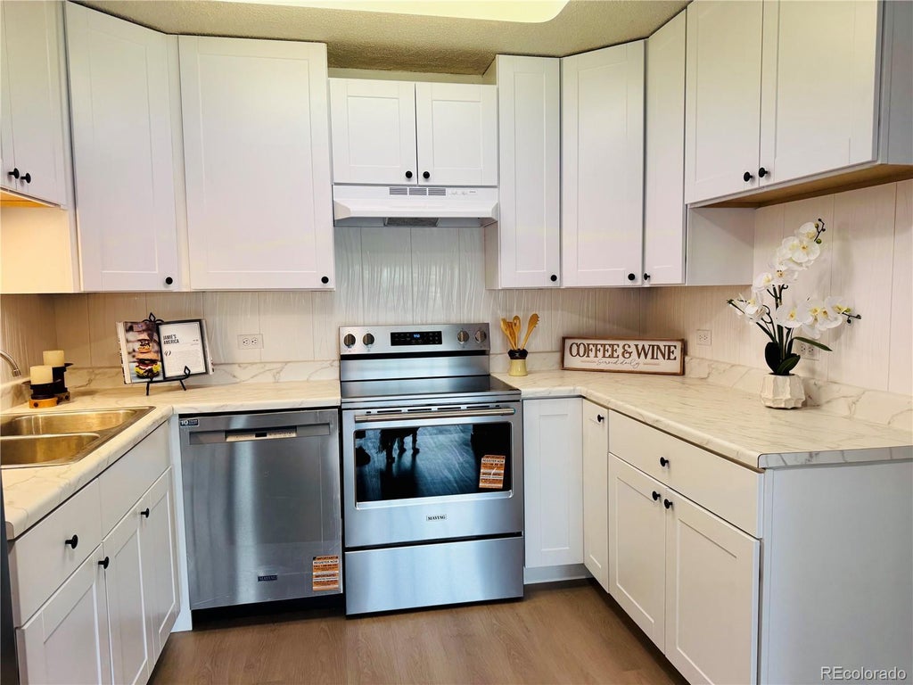 Welcome to this completely renovated 2-bedroom, 1-bathroom condo featuring ample room for dining and living space. As you step inside, take off your coat and slip into your favorite pair of slippers. Your beautiful, brand-new kitchen complete with new shaker cabinets, laminate tops, and new stainless steel appliances is the perfect place to create delicious and comforting meals. Enjoy your creations in the open-concept dining and living area. The spacious primary bedroom is large enough to fit a king-size bed and a secondary bedroom can serve as an office or bedroom to accommodate guests. The bathroom is updated with a new vanity and granite counter top, and plenty of handrails. Take your morning coffee on the South-facing screened in lanai flooding the room with natural sunlight with views of the Highline Canal. Everything in this unit has been updated including the floors, paint, base trim, lighting, and appliances. Storage units are available on the floor of the unit and building laundry is one floor down. A detached garage is available for a car or extra storage space. Windsor Gardens is Denver’s premier 55+ community! Amenities at WG include indoor and outdoor pools, a fitness center, hot tub, sauna, billiards, onsite restaurant, clubhouse with meeting/party room, activities and clubs for a varitety of interests, and a 9-hole golf course! WG is conveniently located minutes from Cherry Creek shopping center, I-225 highway, Lowry Town Center, grocery stores, and has numerous RTD bus stop locations throughout the community. The Highline Canal is just mere steps away from this unit. Don’t miss the opportunity to make this your new home!