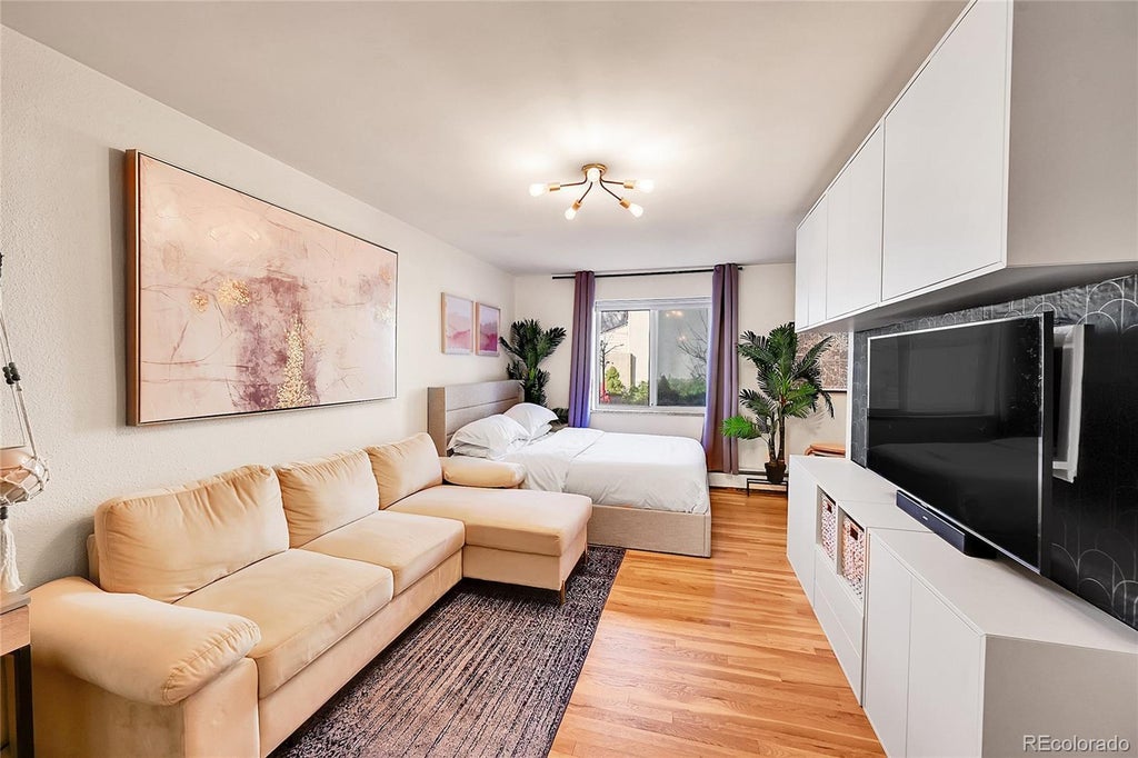 This stylish studio in Denver’s desirable Highlands neighborhood offers the perfect blend of modern comfort and convenience. Fully furnished and move-in ready, it’s an excellent choice for both owner-occupants and investors seeking a turnkey opportunity. The building features a beautifully maintained outdoor community courtyard with a tranquil water fountain, BBQ area, picnic tables, and bike racks—exclusively for residents. Inside, the studio showcases a sleek contemporary design with stainless-steel appliances, quartz countertops, and striking black-and-white cabinetry, creating a kitchen that rivals those found in single-family homes. The well-planned living area comfortably fits a full-size couch, a spacious bed, and a built-in entertainment center with ample room for a large flat-screen TV. Additional conveniences include shared laundry facilities and a private storage unit. Ideally located, this studio provides effortless access to the Highlands' top-rated shopping, trendy restaurants, and lively nightlife. Sports fans will appreciate the close proximity to Empower Field at Mile High and Coors Field for Broncos and Rockies games, as well as Ball Arena for Avalanche and Nuggets matchups and other major events. With easy access to I-25 and Speer Blvd, commuting and exploring the city is a breeze. Whether you're searching for a primary home, a weekend retreat, or a savvy investment, this studio is a must-see! ** https://v1tours.com/listing/56069/ **