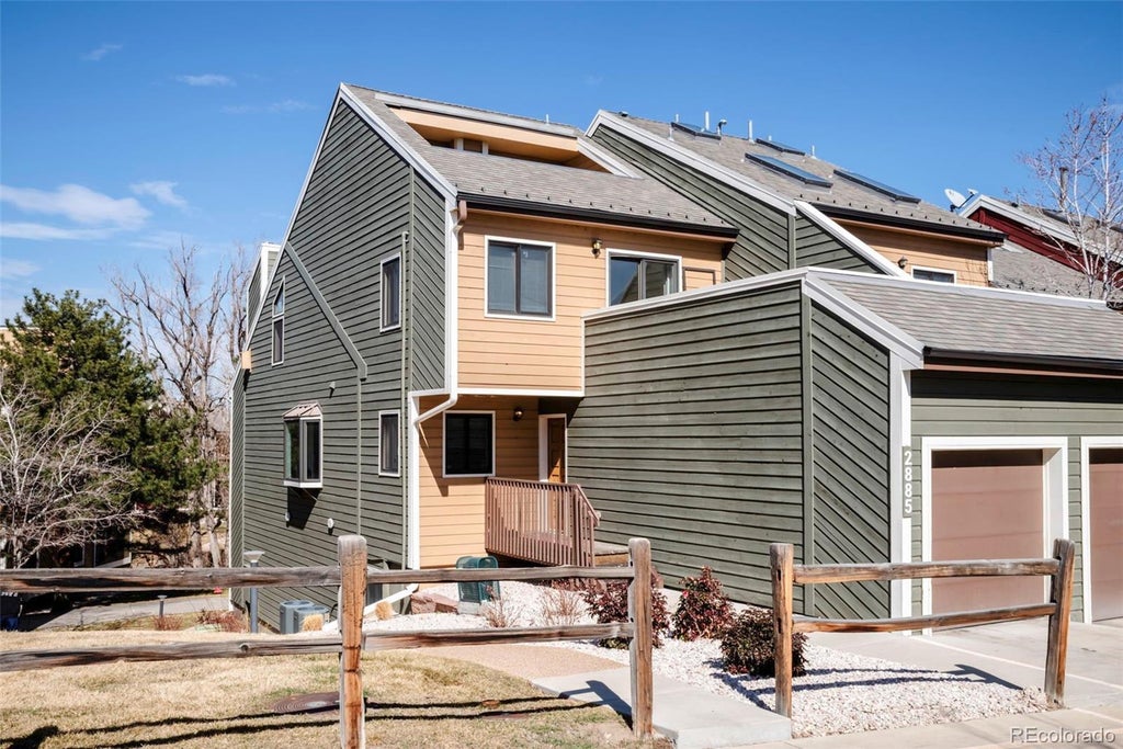 Outstanding location adjacent to CU! Two south-facing roof top decks with flatiron mountain views! End unit townhome style condo with numerous windows, walkout lower level, vaulted ceilings, skylights and open floor plan. Brand new carpet! Property is set back from 28th. Street, and backs to HOA green space. 1 car south facing attached garage. Primary suite with private full bath. Both the living room deck and lower level deck look out over HOA green space. Great separation of living areas over three different levels. Property was completely rebuilt in 2014. New roof in 2020.