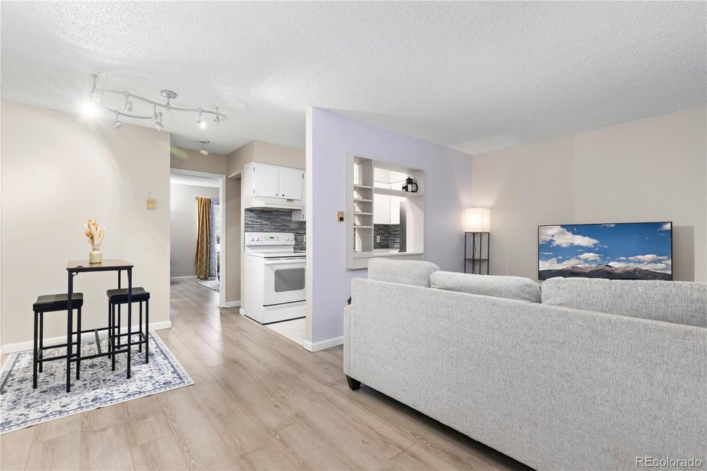 Welcome to this beautifully updated condo in a prime Denver location! Recently upgraded with stylish Luxury Vinyl Plank flooring and tile flooring in October 2024, this home offers a spacious open floor plan where the living room, dining area, and kitchen blend seamlessly, perfect for both relaxing and entertaining. The bright bedroom features a private balcony and convenient en-suite bathroom access, providing a comfortable retreat. Enjoy low-maintenance living, as the HOA covers heat, water, sewer, and trash, while the community offers a seasonal outdoor pool and lush green spaces. With a reserved parking spot directly in front of the building and easy access to shopping, dining, and major highways, this condo truly combines convenience with charm in the heart of Denver!