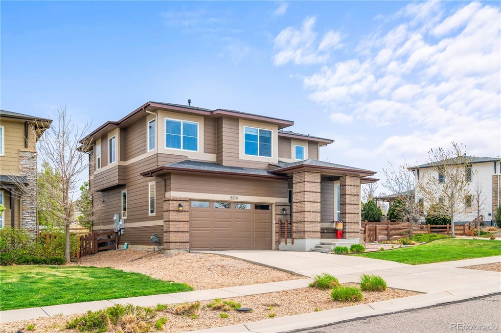 Stunning Corner-Lot Home with Mountain Views in Coveted Candelas! Perfectly positioned on a spacious corner lot, this beautifully upgraded 4-bedroom, 4-bathroom home (5th bedroom could be added) fronts to serene open space, a peaceful community pond, and showcases breathtaking mountain views from nearly every room. Step inside to discover bright, open living spaces flooded with natural light. The main level features gleaming hardwood floors, a private home office, and a seamless flow from the gourmet kitchen—complete with granite countertops, stainless steel appliances (including a gas range), and a center island—into the inviting living and dining areas. Upstairs, the expansive primary suite is a true retreat with a luxurious 5-piece bathroom, soaking tub, walk-in shower, and a generous closet. The fully finished basement adds even more living space, offering a stylish guest suite, a home theatre area, a dry bar with wine cooler, and ample storage. Designed for both relaxation and entertaining, the professionally landscaped backyard boasts a covered stamped concrete patio, a charming pergola, and an automatic sprinkler system for easy maintenance. With neighbors on only two sides, you'll enjoy extra privacy and tranquility. Additional features include an oversized garage (roomy enough for a full-sized truck), a second refrigerator, built-in storage shelving, a radon mitigation system, and a fully paid-off solar system to keep energy bills low. Located in the vibrant Candelas community, you'll have access to two resort-style pools, fitness centers, six parks, and over 16 miles of interconnected trails—right outside your front door. This home has it all—style, space, upgrades, and unbeatable views. The only thing missing is you! *New Roof 2022 with transferrable warranty, new water heater in 2022, and solar panels paid off. Buyer's contingency fell through so back on the market!