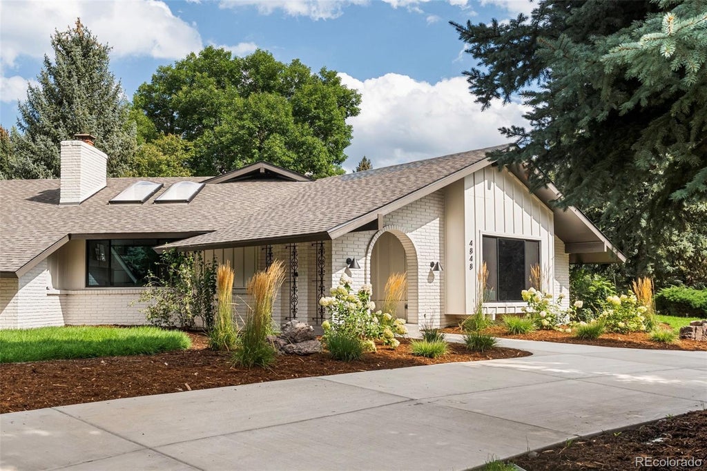 Experience elevated living in this thoughtfully reimagined 4-bedroom, 4-bath ranch-style home, where timeless elegance meets modern design. From the moment you enter, soaring vaulted ceilings and hand-crafted white oak beams set the tone for what is easily one of the most exceptional homes in the neighborhood. The open-concept layout is both functional and refined, grounded by wide-plank engineered hardwood flooring that runs seamlessly through the main and lower levels. Expansive walls and natural light provide an ideal setting for displaying art, creating a home that feels as much like a gallery as it does a retreat. At the heart of the home lies a truly custom kitchen—complete with quartz countertops, custom white oak cabinetry, an oversized island, quartz slab backsplash, and high-end appliances. Just off the kitchen, a moody, fully-equipped butler’s pantry adds both character and convenience. Beyond, a hand-troweled plaster fireplace anchors a cozy lounge area, offering a warm, organic touch. The primary suite is a retreat of its own, with a massive custom closet and a striking en suite bath featuring an arched shower entry that nods to the home’s subtle Spanish influence. Two additional bedrooms on the main floor provide ample space for family or guests. Downstairs, the finished lower level expands your living space with a secondary family room, a wet bar, a fourth bedroom, a stylish bath, and a stunning laundry room with ample storage. Step outside to enjoy seamless indoor-outdoor living on the brand-new deck with a built-in gas fireplace. Mature landscaping ensures shade and privacy across the rare ?-acre lot, while both a circle driveway and traditional driveway offer abundant parking for guests and golf carts. Around the corner from Boulder Country Club golf course, this home delivers not only luxury, but a lifestyle of convenience and leisure. Major upgrades include new AC, baseboard heating system, roof & gutters, windows, and garage door.