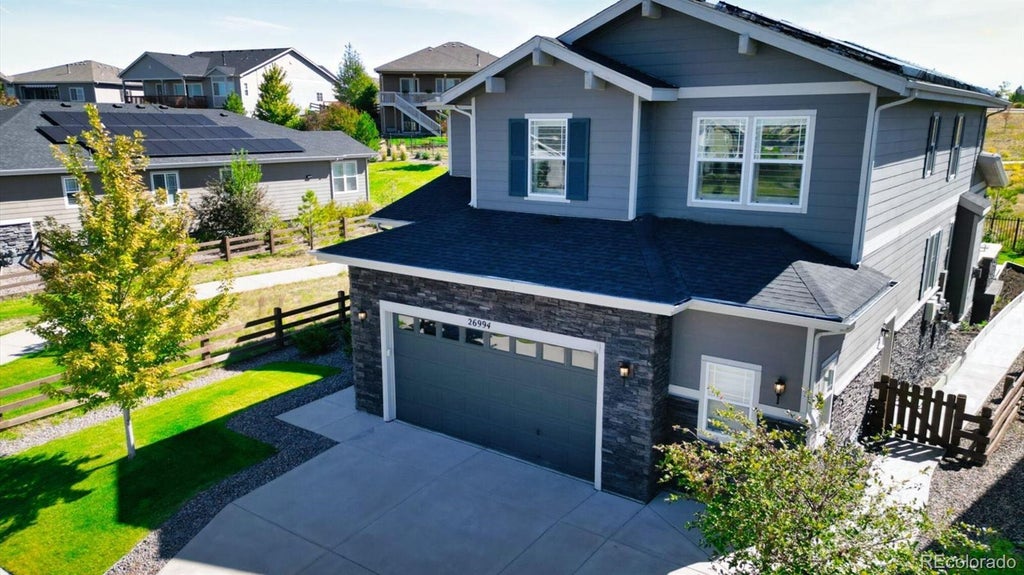 Better than new SETH! Walk tro top rated Cherry Creek School District K-12, backs to greenbelt, across the street from walking trails, you couldn't ask for a better location! This exquisite 2-story home epitomizes comfort, luxury, and convenience! Boasting 5 bedrooms and 3 bathrooms, this immaculate residence is impeccably maintained and awaits your immediate enjoyment. Upon entry, the open layout of the main level creates an inviting atmosphere, perfect for entertaining guests. The cozy family room, complete with a gas fireplace, sets the stage for intimate gatherings, while the formal dining room provides an elegant backdrop for memorable meals. Additionally, a main floor bedroom easily transitions to a convenient home office. The heart of the home, the gourmet kitchen is a Chef's dream! It features stainless steel appliances 42" upper cabinets, granite counters, a walk-in pantry and a remarkable oversized island. Upstairs, the spacious owner's suite offers a luxurious retreat, with a spa-like 5-piece bath and dual walk in closets. Three additional bedrooms, 2 bathrooms, a generous loft and a super handy laundry room complete the upper level. Step outside into your private backyard oasis, complete with an outdoor kitchen with two beer taps and top of the line Lynx appliances. The covered patio provides ample space for outdoor entertaining. Enjoy the tranquility of a wonderfully landscaped yard and gather around the fire pit for cozy evenings under the stars. With direct access to open space and trails, this home offers unparalleled opportunities for outdoor recreation and exploration. Experience the unique lifestyle of Southshore! Walk to the new K-12 and Rec Center in minutes! Residents enjoy access to a wealth of amenities, including the newly opened 9,000 square feet recreation center. Features such as year-round natural light, high end finishes, and a serene, quiet street add to the allure of this exceptional property. It's a rare opportunity not to be missed!