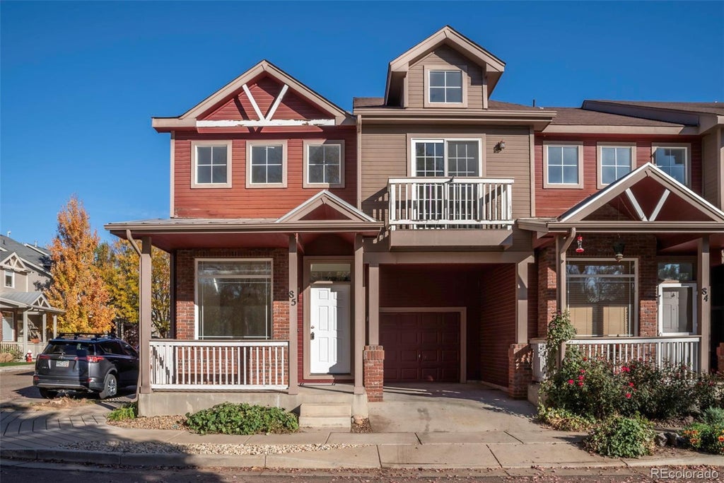Charming three-bedroom townhome in a sweet location! South facing end unit flooded with natural light. Home is situated on a very quiet interior street, with only 1 shared wall! Enjoy looking out over the HOA green space from your covered front porch. New carpet, fresh paint, wood floors on the main level and dramatic vaulted ceilings. Primary bedroom with private bath, walk-in closet, and large south facing windows. Sunny laundry room on the upper level. One-car attached garage. NOT in a metro tax district!