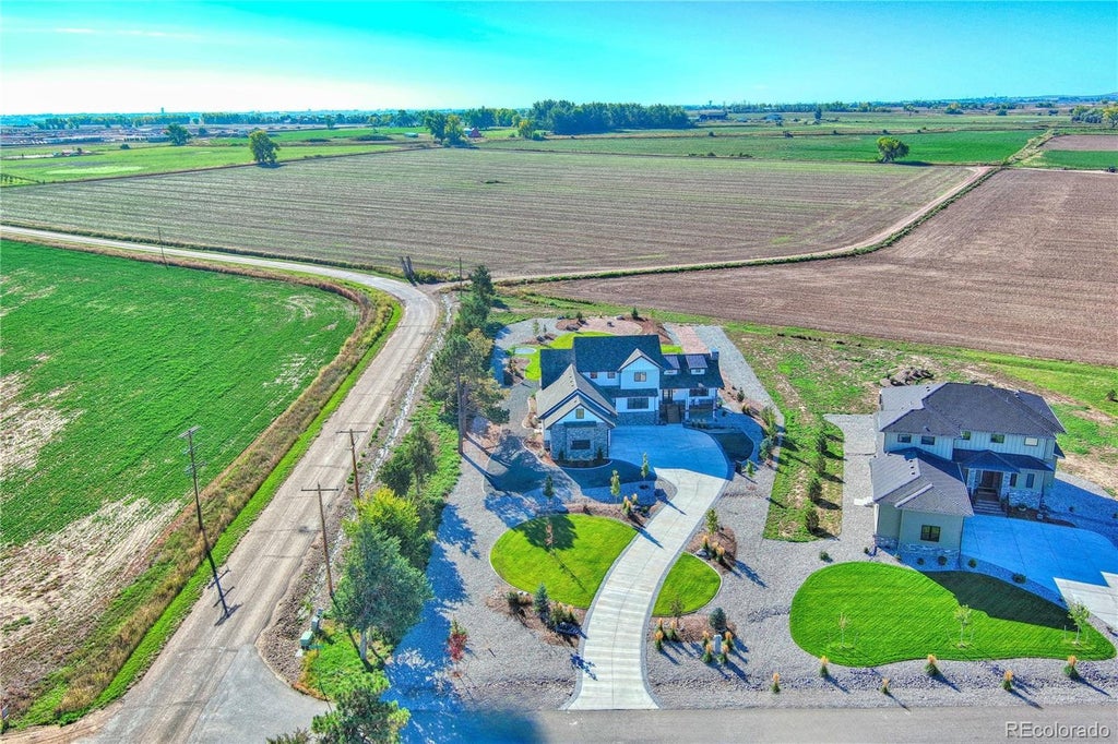 Modern Luxury with Majestic Mountain Views located in Longmont. Set on just over an acre, this striking modern residence offers a rare combination of elevated design, privacy, and panoramic views of the Rocky Mountains. Built for those who value both form and function, the open-concept layout features expansive living spaces filled with natural light, soaring ceilings, and sleek architectural lines. The fully finished basement expands the home’s versatility with two additional bedrooms, generous living space, and endless potential for guest quarters, a home gym, and a media room. The professionally landscaped backyard is a true showpiece—ideal for entertaining or unwinding; offering multiple outdoor lounge areas, room for a custom fire pit or spa, and unobstructed views that stretch for miles. Need an outbulding, the area allows for 1200sq ft. Tucked away in a quiet enclave yet within 15 minutes of vibrant downtown Longmont, top-rated schools, trails, and Boulder amenities, this home delivers an unmatched lifestyle of peace and luxury and is complete with Jelly Fish lighting.