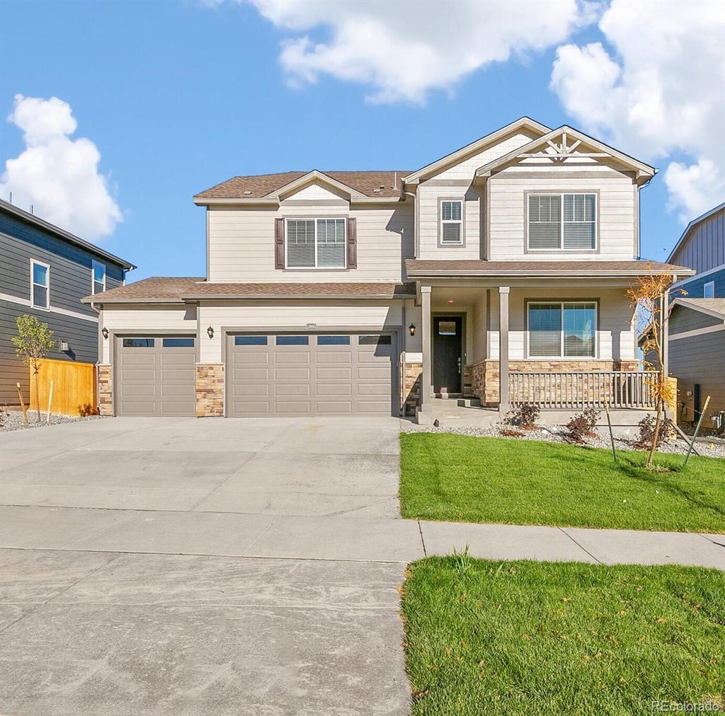 Find all the space you need in the Hennessy floor plan located in Hansen Farm. Inside this inviting 5-bedroom, 4-bath home, you'll find a loft, walk-in closets and 2,718 sq.ft. of living space. As you enter through the front door you will see a secondary bedroom that can be used as a study or flex space. Continuing down the hallway, you will see the guest bathroom and a coat closet and access to the stairs leading you to the second floor. This open concept floor plan flows seamlessly allowing the heart of the home to feel functional. Step into the great room that features expansive 9' level ceilings, vinyl dual pane window with low-E glass allowing for natural light to shine in and keep the cold out. Flowing from the great room is the dining nook that provides access to the back patio through the sliding glass door. Making meal time and entertaining a breeze. Homeowners enjoy the design and functionality the kitchen provides from the meal prepping space to the storage space this new home has it all. The kitchen offers premium cabinetry, large counterspace with a sharp Horton E - Modern White interior package, quartz countertops, LUXE kitchen appliances with range hood and gas range along with a large corner pantry. An added bonus is the built-in island that includes the sink and dishwasher, plus the ability to serve as a table or serving area. When it is time to wind down, the upstairs becomes the perfect haven. The laundry room with shelving is tucked away and close to all the rooms making chores easy. You also find three spacious secondary bedrooms with equal closet space and walk-in closets, the second bathroom and a lien closet. The primary bedroom has plenty of space, a connected bathroom with a double vanity sink, a separate space for the toilet, and a walk-in closet that has additional storage space. ***Estimated Delivery Date: September. Photos are representative and not of actual property***