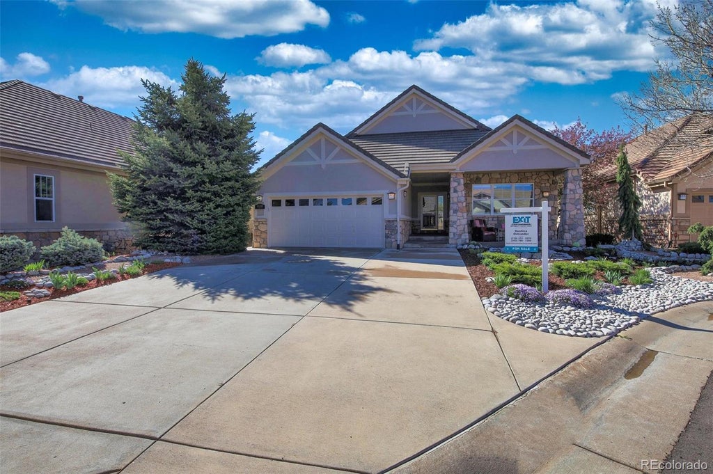 Perfectly positioned in the prestigious Saddle Rock Golf Club, this property offers breathtaking, unobstructed views of the lush fairways and open skies—views you can enjoy every day from your covered balcony, the ideal spot to sip your morning coffee or unwind in the evenings. This thoughtfully designed ranch-style home features a xeriscaped yard, offering both beauty and low-maintenance living. Step inside to the foyer that flows into an open living area filled with natural light. The living room features a cozy gas fireplace, while the kitchen is a chef’s dream, complete with custom lighting, granite countertops, a gas cooktop, double ovens, and hardwood floors that add warmth throughout. The dining area sits just off the kitchen and living space, making entertaining effortless. The primary suite is a true retreat, located on the main level and featuring golf course views through a bay window, custom ceilings, two walk-in closets, and a luxurious en-suite bathroom with double sinks, a jetted soaking tub, and a separate shower. Also on the main level, you’ll find an additional bathroom and a second bedroom with built-in desks—perfect for a home office or study. The walk-out basement is designed for relaxation and entertainment. It features a family room with a linear fireplace, a dry bar with a beverage cooler, and direct access to a covered patio that continues to showcase the amazing golf course scenery. Two additional bedrooms and another full bathroom provide plenty of space for guests or family, while half of the basement is unfinished, offering potential for customization. The location couldn’t be better—minutes from Southlands Mall, top-rated Cherry Creek schools, parks and trails, with quick access to E-470. This home is the perfect blend of luxury, comfort and convenience, all set against the serene backdrop of one of Aurora’s most sought-after golf course communities. Don’t miss this rare opportunity to live the Saddle Rock lifestyle.