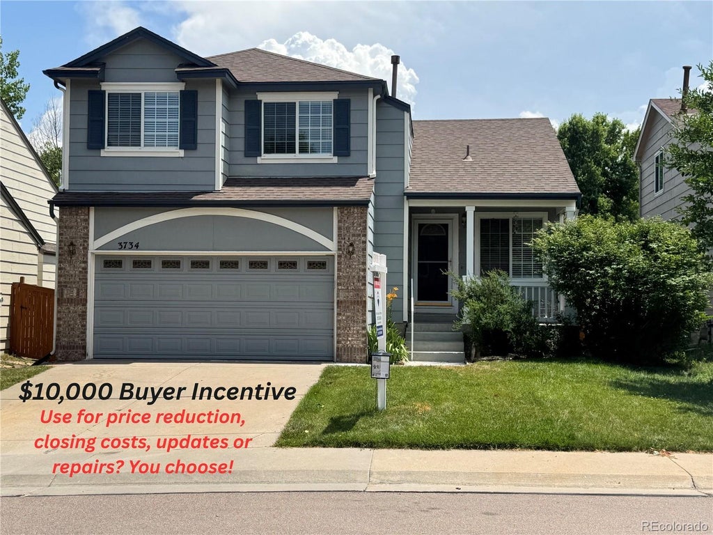 $10,000 INCENTIVE OFFER TO BUYER on this updated 3-bed/3-bath tri-level home in the Meadows. Use the $10,000 to reduce the price, use for closing costs, personalized updates or repairs. It's your choice. Step inside. You'll find an open floorplan, natural light throughout and many updates. Flexible main floor living room. Kitchen with black pearl granite, white cabinets, eating space and newer stainless-steel appliances. The kitchen is just steps away from the family room, complete with gas fireplace. Upstairs primary suite, with his and her closets, plus walk-in. Updated tub, shower, tile in primary bath. Double sinks. Two secondary bedrooms, full bath and small computer nook complete the upper level. Finished rec room in basement + laundry. The MANY RECENT UPDATES, include new interior paint, new baseboards, new blinds, and new flooring - both carpet and luxury vinyl tile; painted cabinets and granite counters (all in 2025). Ceiling fans in primary bedroom and family room. Fireplace - cleaned and serviced in 2025. Enjoy the outdoors...flat yard, fully-fenced, and a 300 square-foot patio for outdoor living. Water heater replaced in 2020. Furnace replaced in 2019. Microwave, stove and refrigerator new in 2018. Washer and dryer stay. New concrete walkway and steps (garage to front door) in 2025. Tucked in a quiet neighborhood. Convenient to shopping and I-25. Close to excellent schools, parks, and miles of running/biking trails. Move-in condition. A must see!