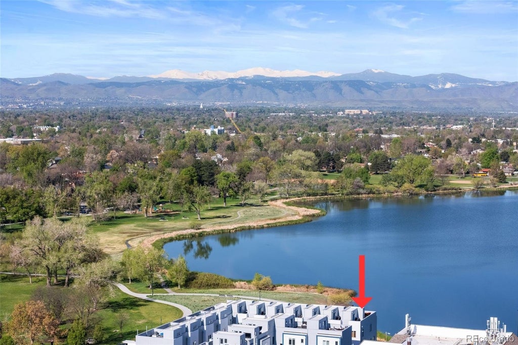 Built in 2021, this modern 2-bedroom, 3-bathroom residence blends luxury finishes w/ smart functionality—and comes w/ the bonus of eligibility for mid-term rentals up to six months per year or long term rentals, making it an exceptional opportunity. The interior boasts a bright, open layout w/ high ceilings, smart home technology, and contemporary design. The main level features a sleek kitchen outfitted w/ quartz counters, smart appliances, and an upgraded pantry, flowing seamlessly into the spacious living area complete w/ electric remote controlled shades and custom lighting. Upstairs, the primary suite offers a peaceful retreat with new carpet, a large closet, and a beautiful ensuite bathroom w/ a walk-in shower. The secondary bedroom is equally impressive w/ its own ensuite bath, built-in Murphy bed, walk-in closet, and a private sauna—bringing the luxury of a wellness spa right into your home. One of the home’s most striking features is the upgraded rooftop deck, installed on a Bison pedestal system w/ panoramic lake and mountain views. Perfect for entertaining or relaxing, the rooftop space includes a hot tub, fire pit, gas grill w/ a direct gas line hookup, and an outdoor TV. Enjoy the Colorado sunset year-round from one of the best rooftop setups in the entire community. Additional upgrades include a 220-volt EV charging outlet in the attached garage, a fire suppression system, smart security features, and thoughtfully added storage throughout. Direct access to Rocky Mountain Lake Park, with Sloan’s Lake, Tennyson Street dining, and the commuter rail just minutes away. The lake is stocked with fish, so you can fish, paddle board, and canoe.